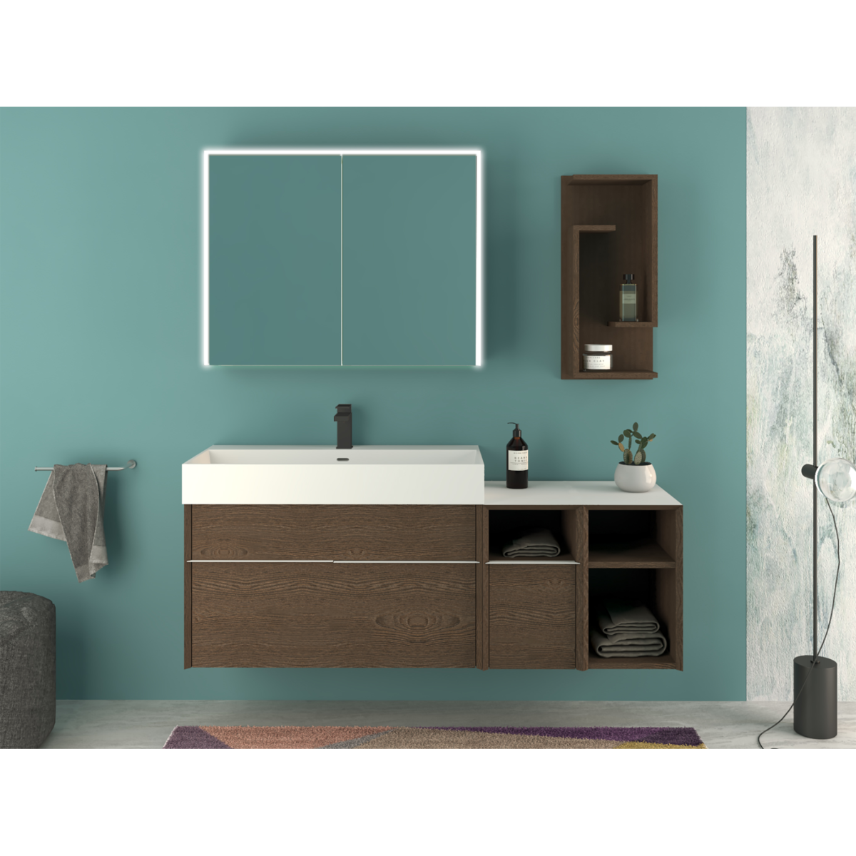 A Space tükrösszekrény letisztult formavilágával és beépített LED világításával korszerű megoldást kínál a modern fürdőszobákba.
