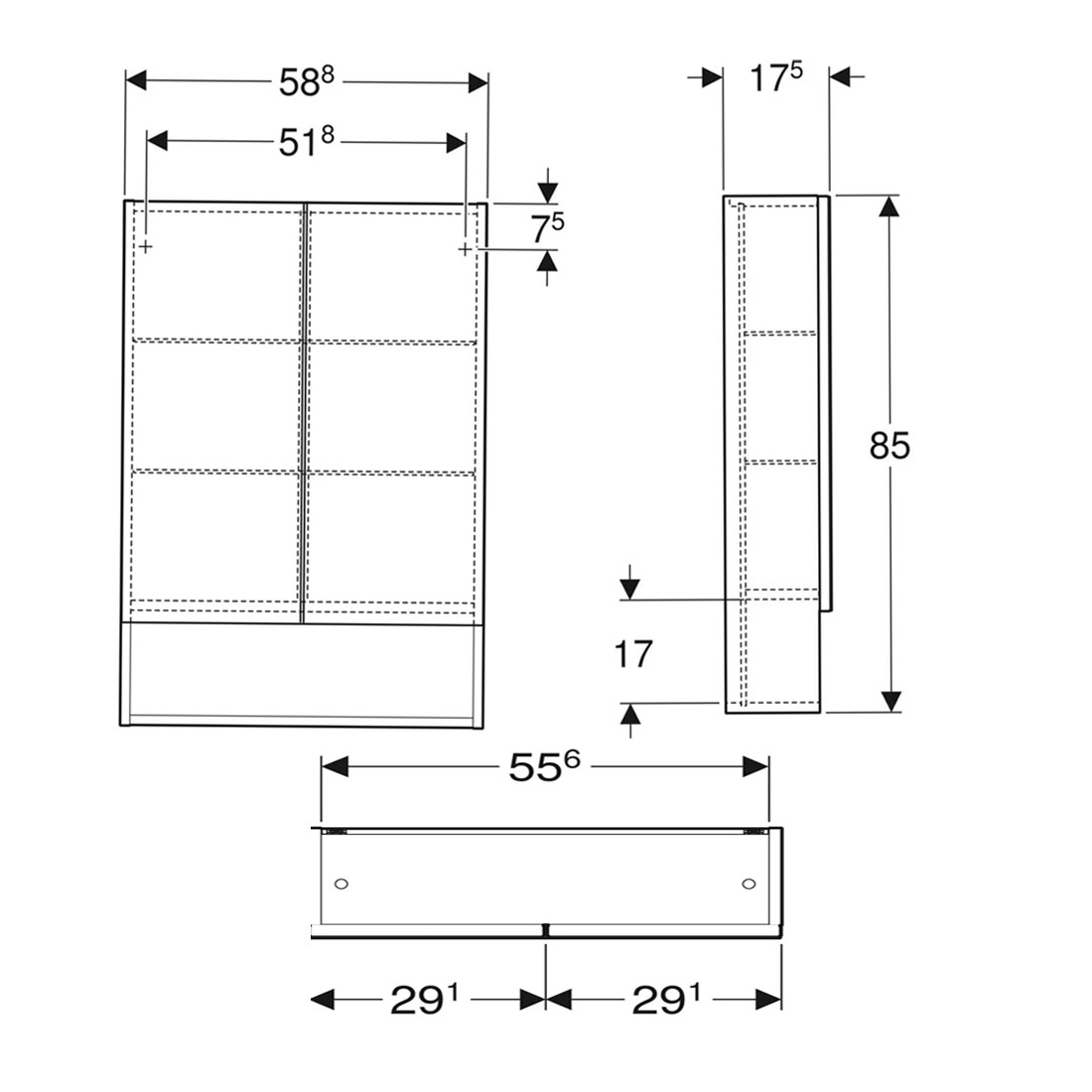 Geberit Selnova Square fehér 58,8x85x17,5cm tükrösszekrény