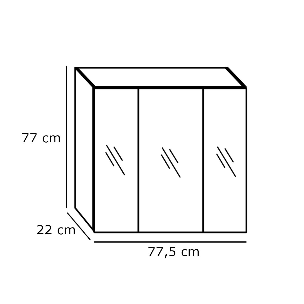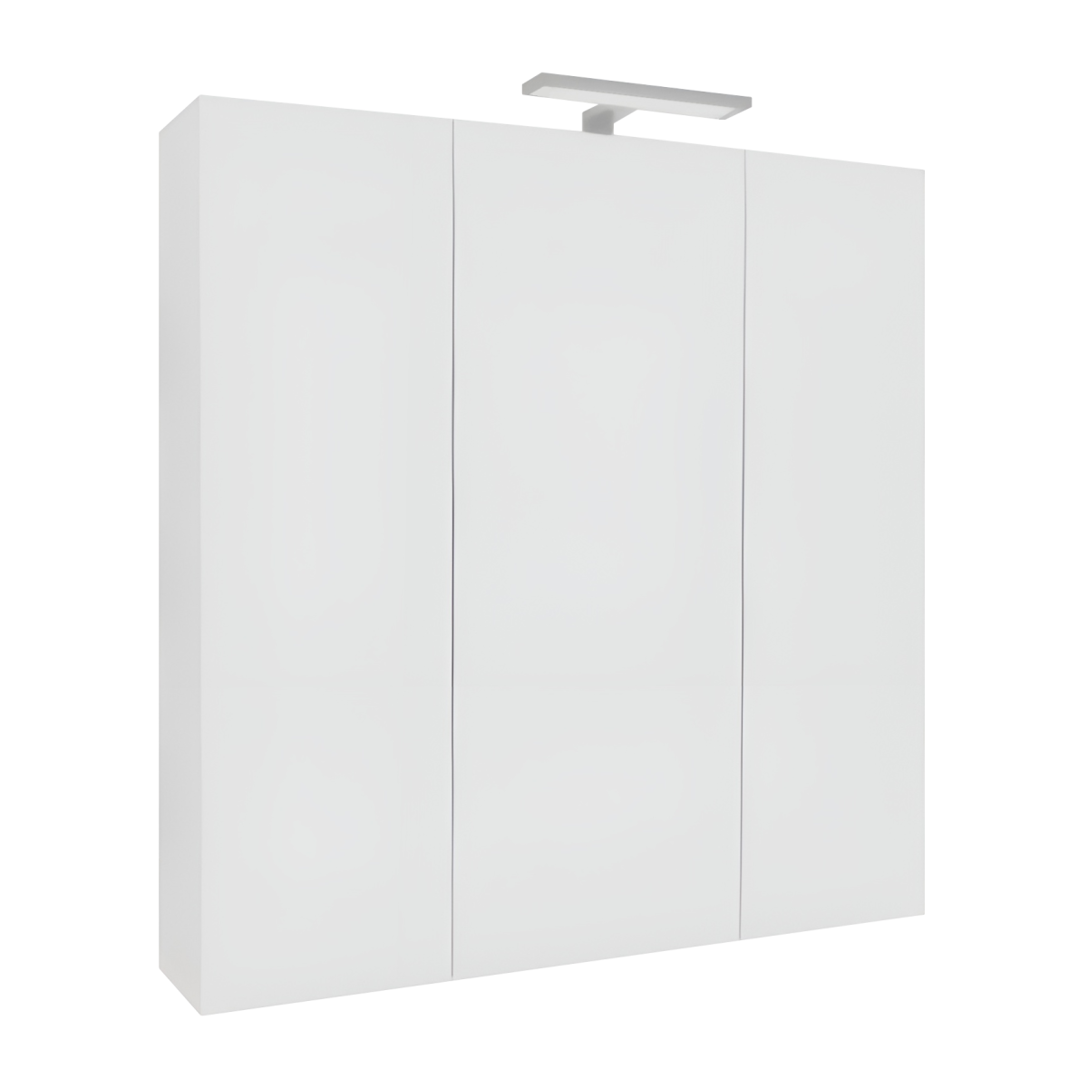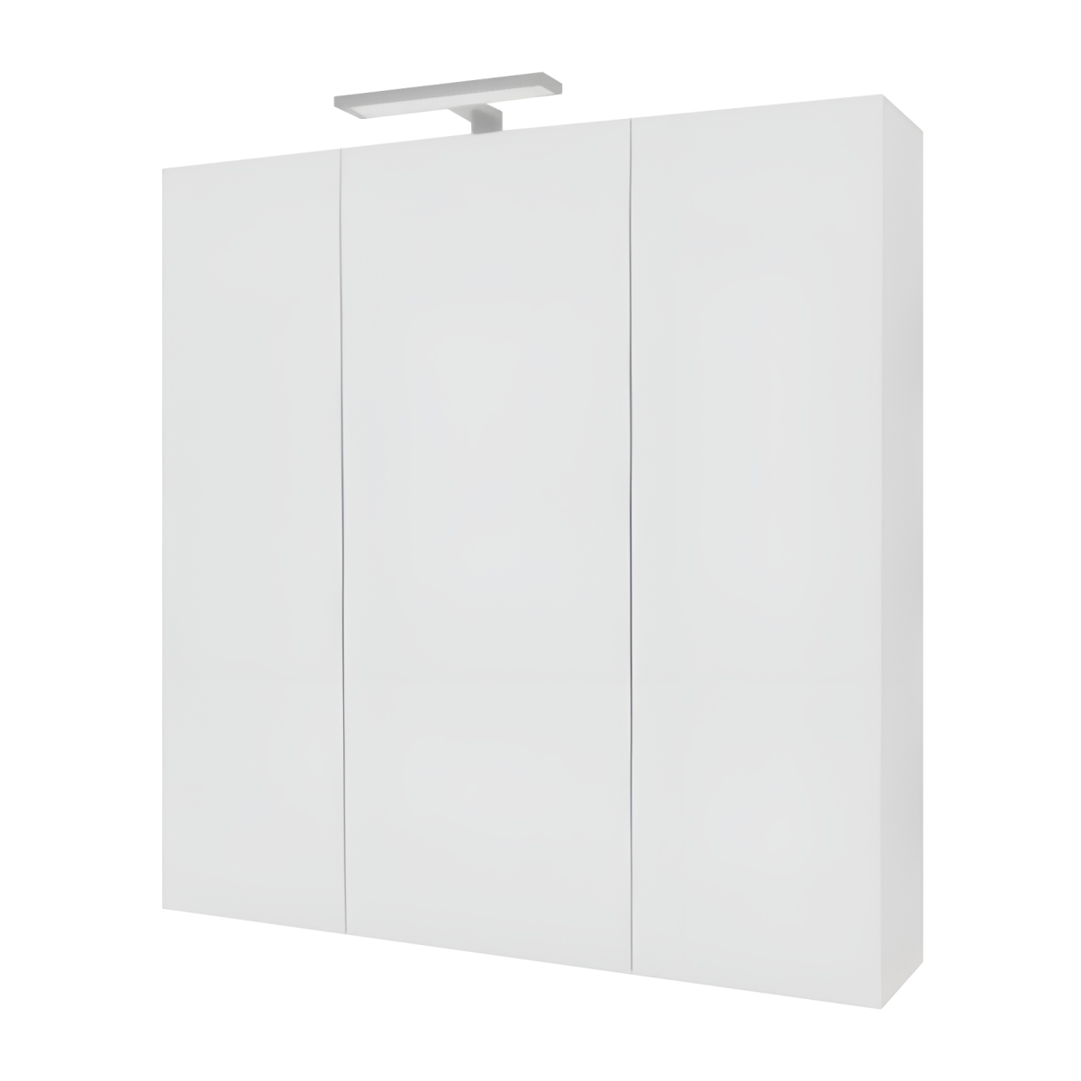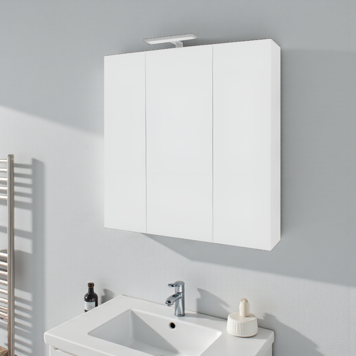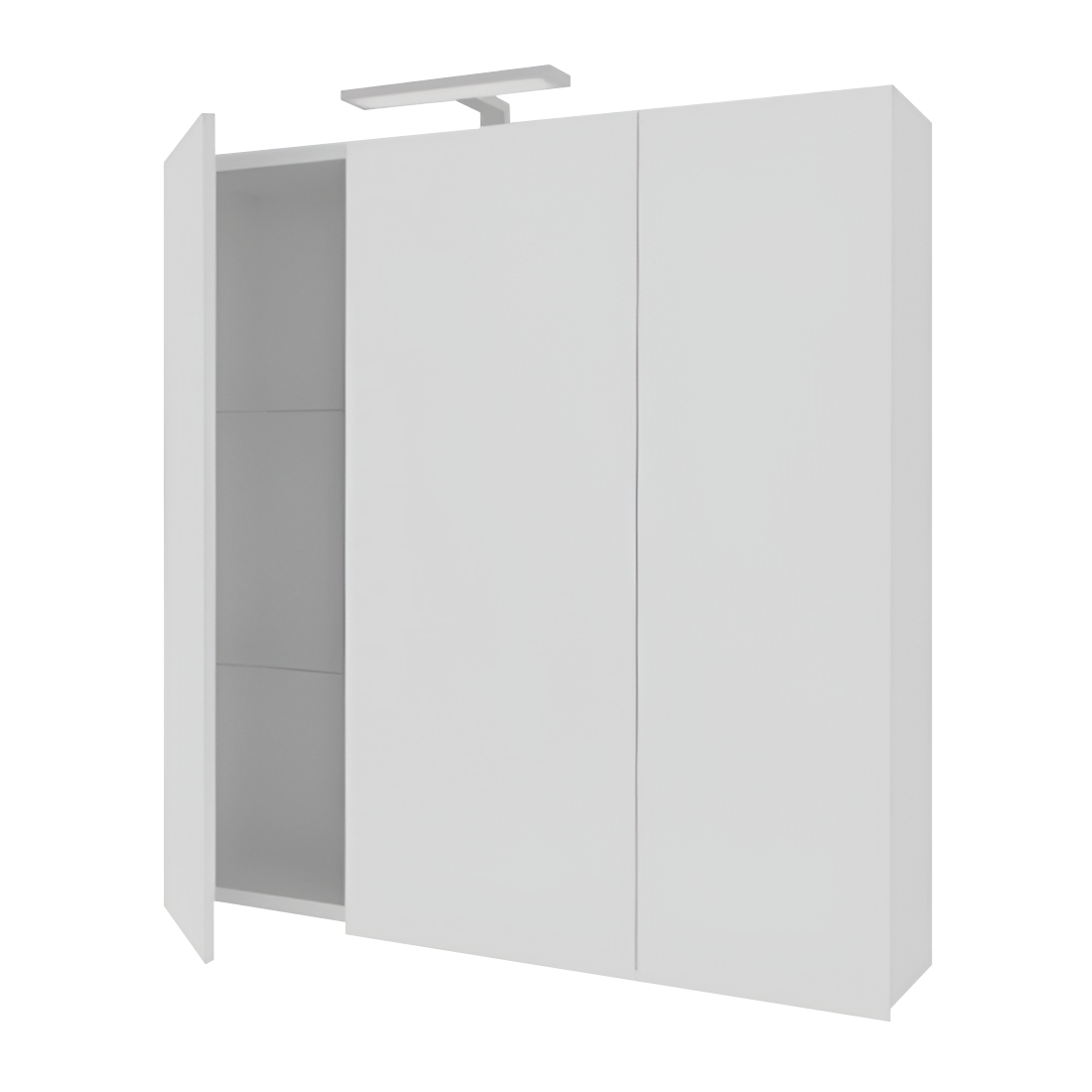 A háromajtós kialakítás mögött 6 belső polc segíti a rendszerezett tárolást, így a mindennapi használati tárgyak könnyen áttekinthetők. A beépített LED világítás célzott fényt biztosít a tükör előtt, ami praktikus a napi rutin során.