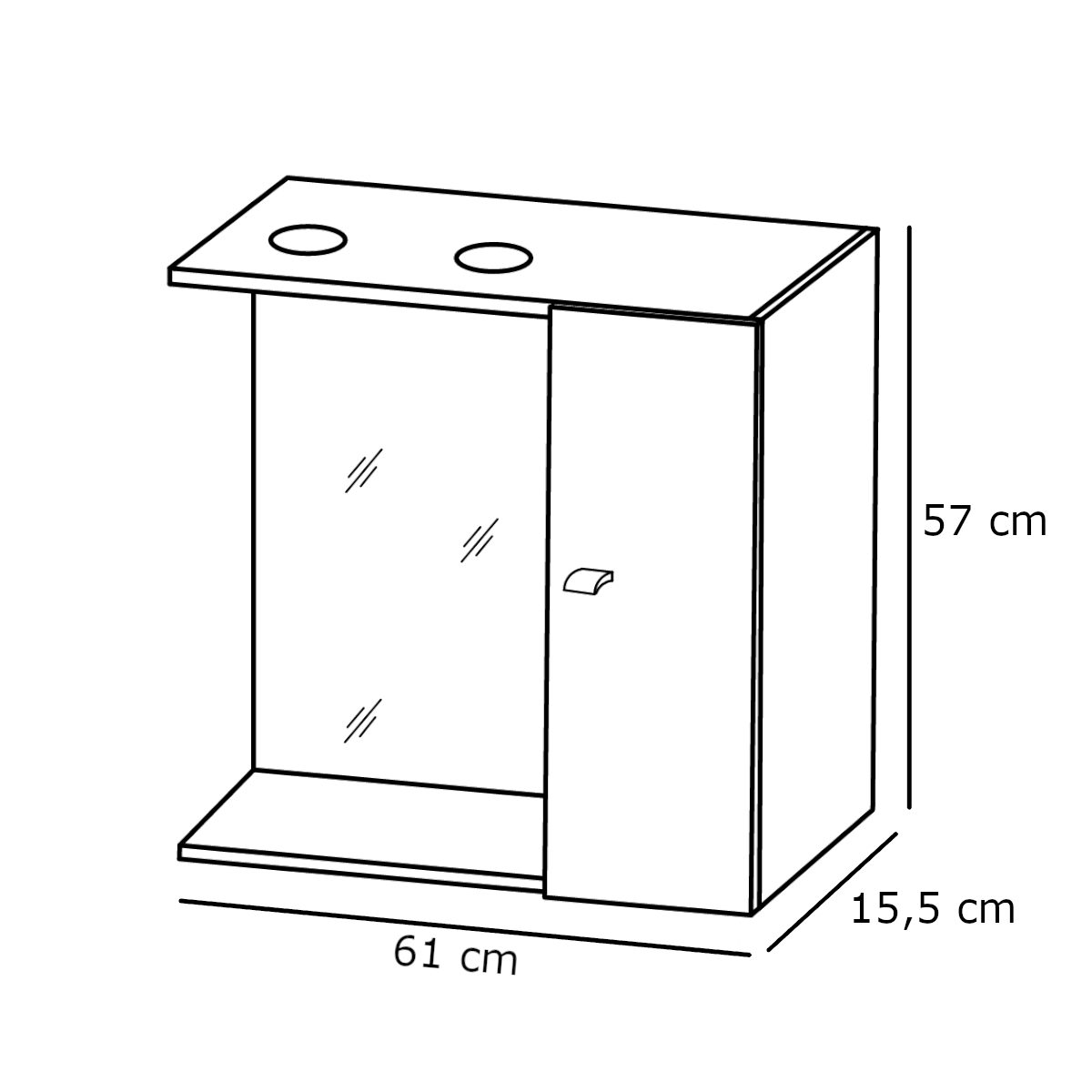 Ez a fehér tükrösszekrény praktikus méretének köszönhetően ideális választás kisebb fürdőszobákba vagy vendégmosdókba. Az egyajtós kialakítás egyszerű használatot biztosít, miközben a tükrös felület a mindennapi tisztálkodáshoz is kényelmes megoldást nyújt.