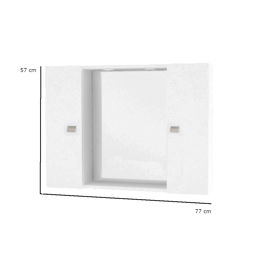 2 ajtós tükrösszekrény, 2 LED spotlámpával felszerelt, frontja magasfényű MDF vákuumpréselt fóliázott. Stílusos tárolási megoldás minden fürdőszobához. A kép tájékoztató jellegű.