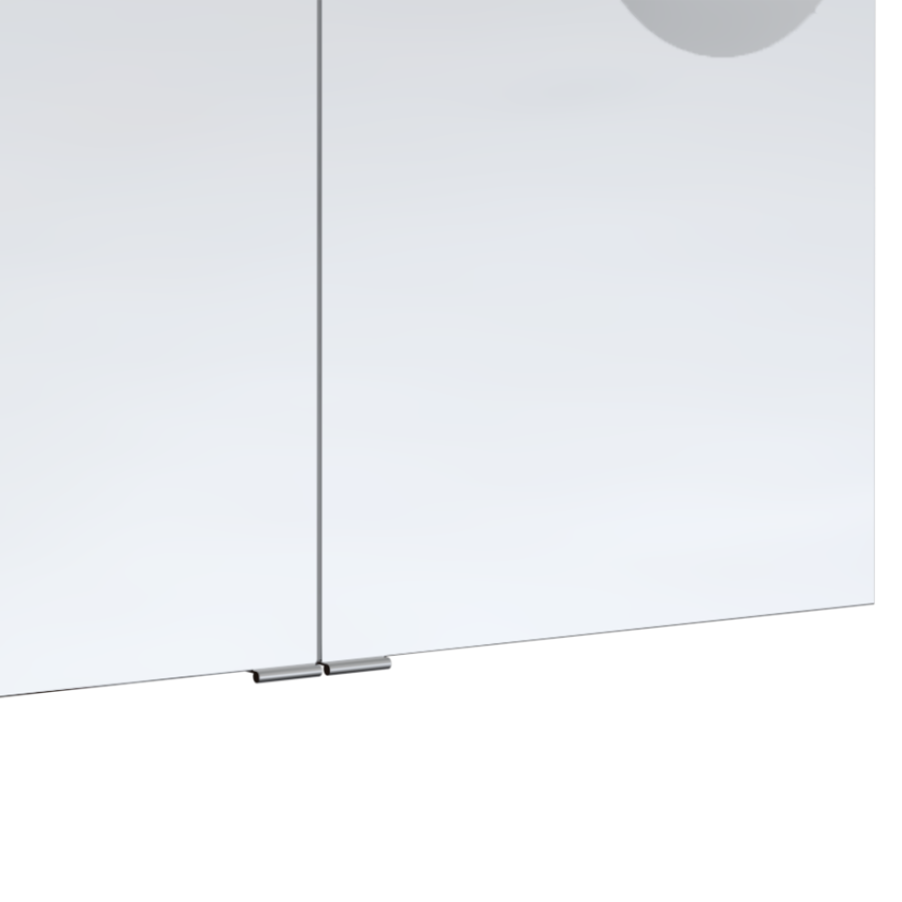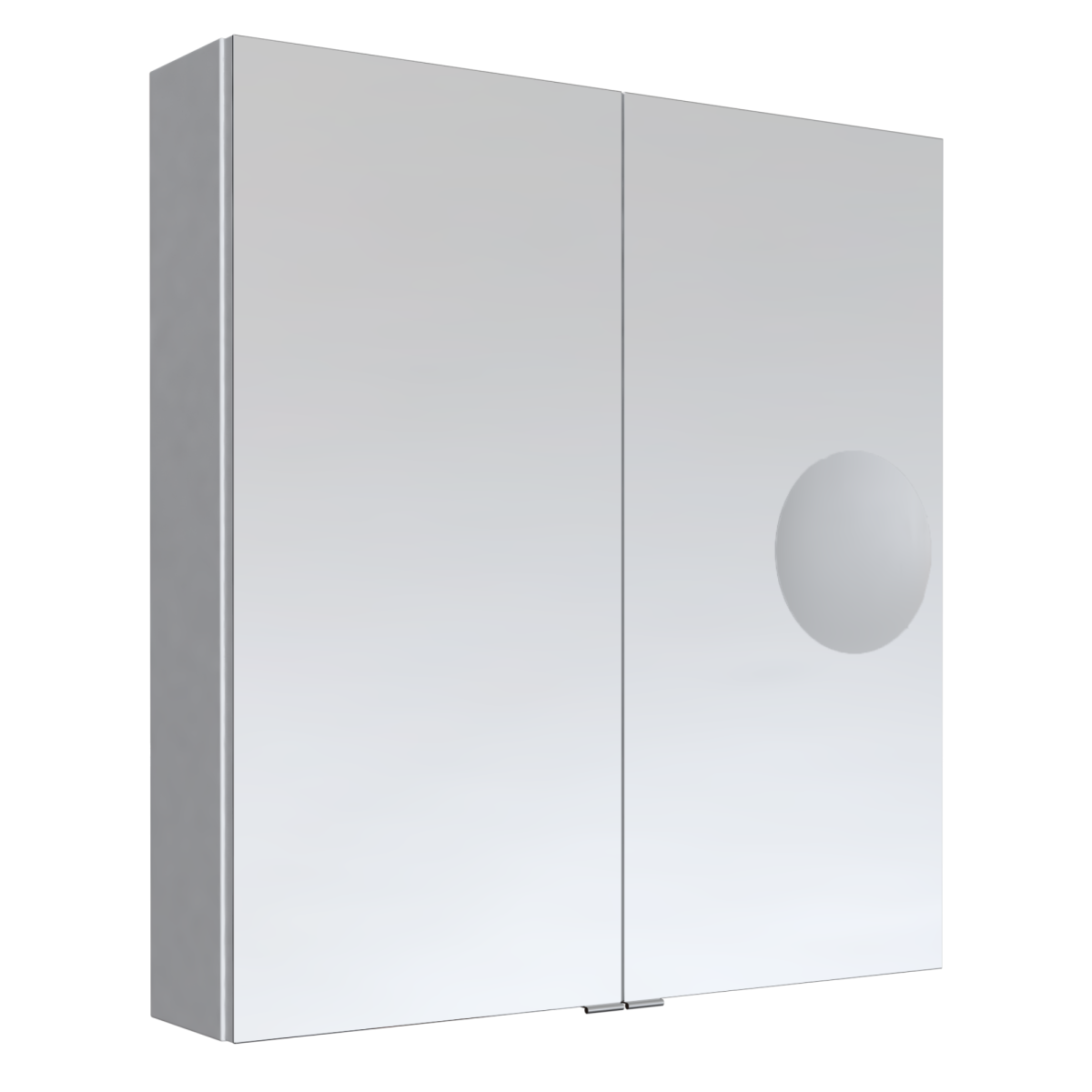 A kétajtós kialakítás mögött jól áttekinthető tárolóhely áll rendelkezésre, míg a beépített nagyítós piperetükör megkönnyíti az arcápolást, sminkelést vagy borotválkozást. A prégelt fehér felület visszafogott, letisztult megjelenést biztosít.