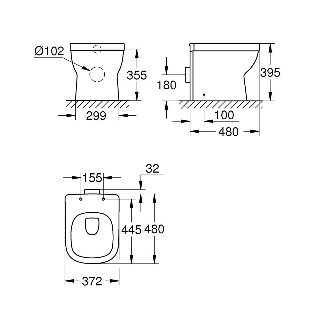 Grohe Euro Ceramic álló WC. Univerzális leeresztő hátsó és alsó kifolyáshoz, mély öblítéses, perem nélküli, öblítési mennyiség 3/5 liter. Rejtett rögzítésű szaniter kerámia, rögzítőkészlettel együtt kapható.
