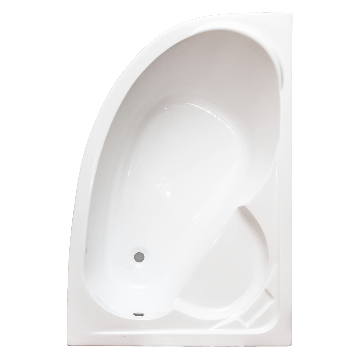 Fehér akril aszimmetrikus sarokkád jobbos kivitelben,háromrétegű üvegszál +műgyanta statikai megerősítéssel. Mérete: 150x100x42cm. Vastagság: 2,8mm.