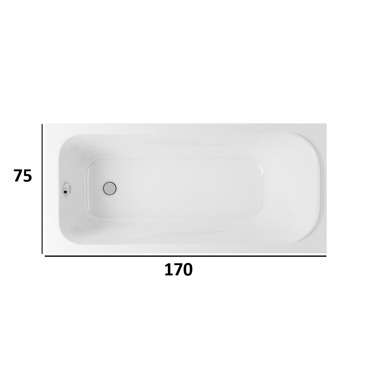 Oceano 170 × 75 cm egyenes akril fürdőkád – megerősített, stabil kialakítás