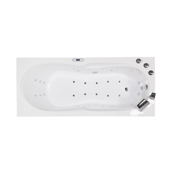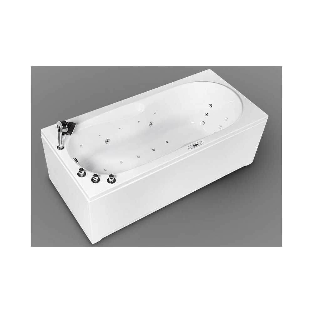 3,2 mm vastag akril kád műgyanta-üvegszálas erősítés a kádtesten, alján 20 mm vastag lemezerősítéssel, Keretes lábszerkezet Kádelőlap + 1 oldallap Automata túlfolyó, leeresztő szelep + szifon. Kádperem rögzítő szett. E-Drive masszázsrendszer: 6 Mikro fúvókás V- Concept hátmasszázs, 4 Midi fúvókás oldalmasszázs, 2 Midi fúvókás lábmasszázs, 10 fúvókás pezsgőfürdő rendszer. LCD kijelző digitális, érintőgombos vezérlés színterápiás világítás, csőkiszárító rendszer ózonos vízfertőtlenítés, biztonsági zár. Vízkapacitás 190 L. Csaptelep nélkül értékesítjük.