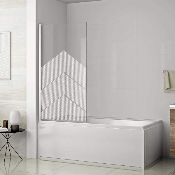 1 részes kádparaván, mérete: 80x140 cm, 180 fokban elforgatható, 4mm mintás biztonsági üveg, krómozott alumínium profilok.