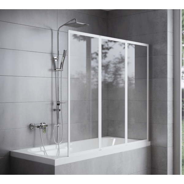 Sanimix háromrészes kádparaván 120x140cm, 4mm üveg, fehér