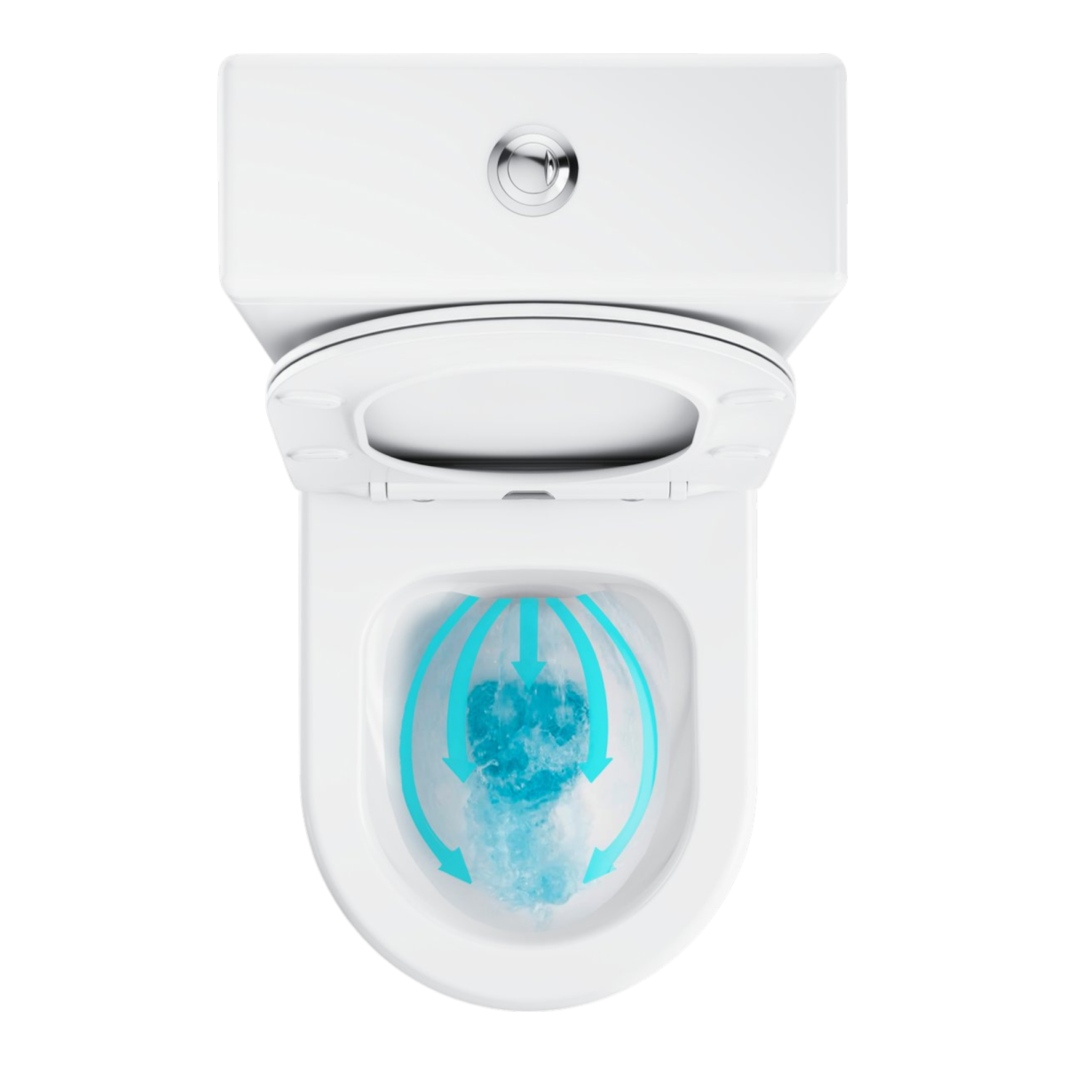 A Ravak Circle RimOff monoblokkos WC korszerű kialakításával és letisztult formájával jól illeszkedik modern fürdőszobai környezetbe. A RimOff perem nélküli öblítési technológia segíti a higiénikus használatot és a könnyebb tisztíthatóságot, mivel a hagyományos perem hiányában kevesebb hely marad a szennyeződések lerakódására. A gondosan kialakított belső forma segíti a víz egyenletes áramlását az öblítés során.