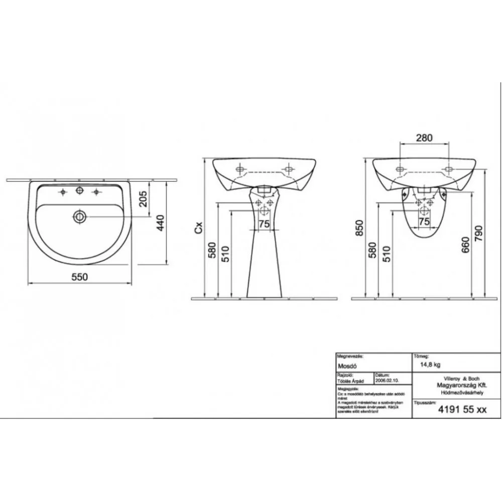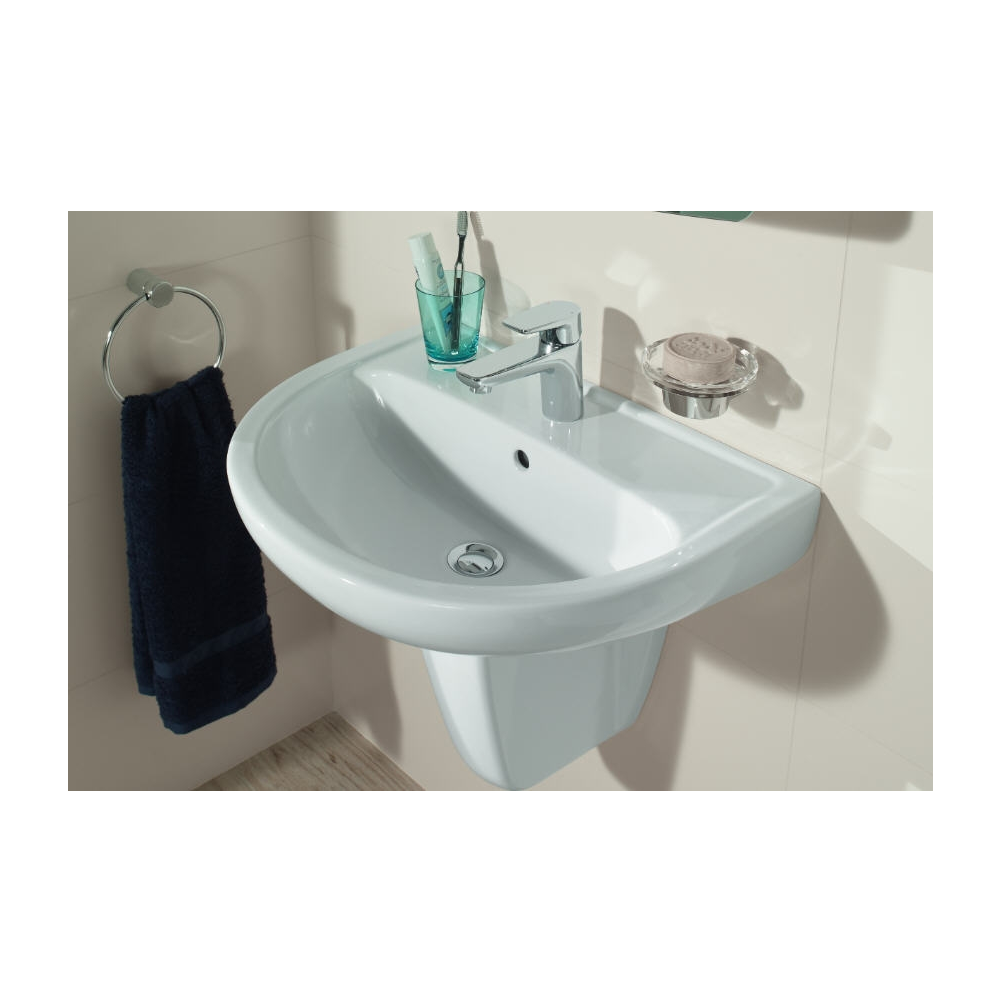 Alföldi Bázis kerámia mosdó, fehér színben, 55x45 cm, 1 csapfurat középen, csaptelep és szifontakaró nélkül. Minden fürdőszoba ideális választása.