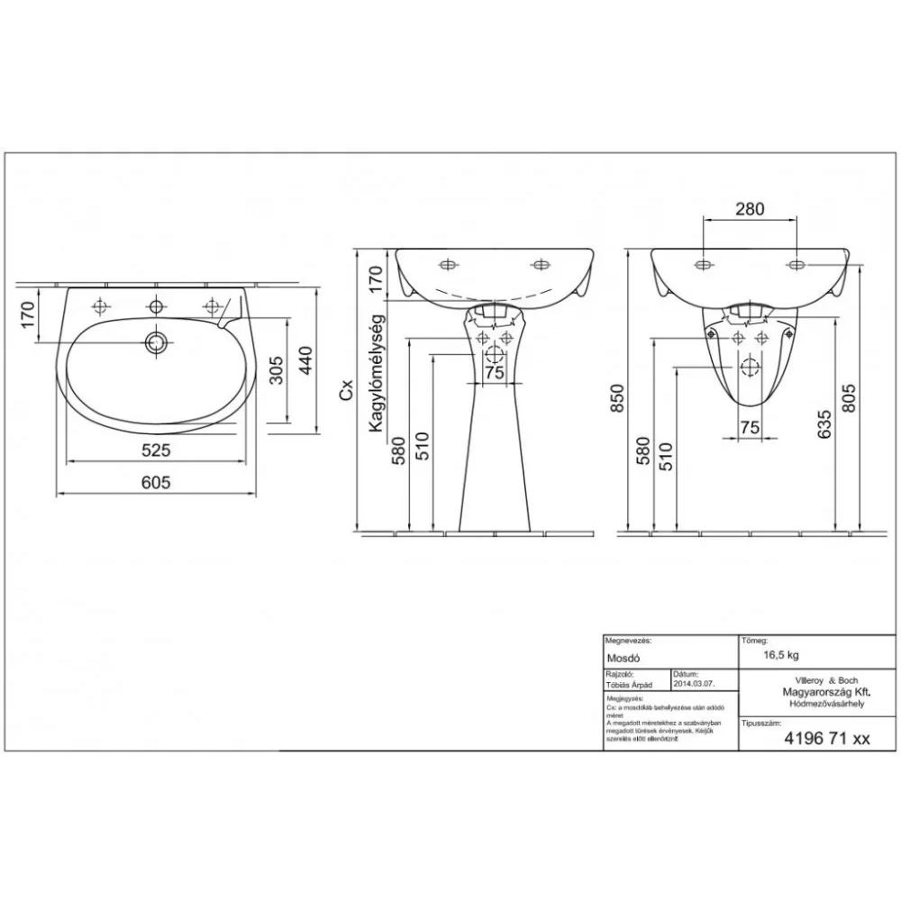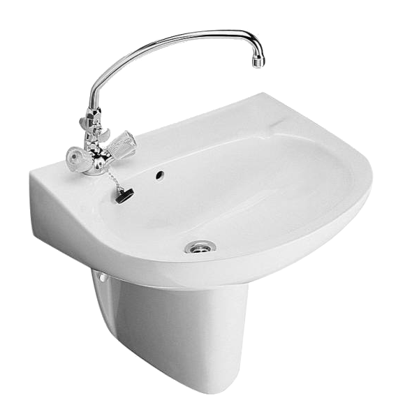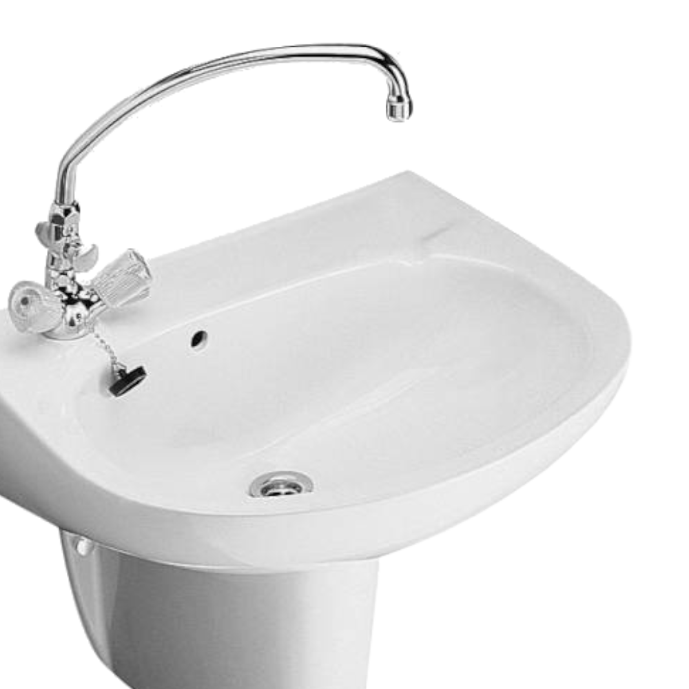 Alföldi Bázis kerámiamosdó, 60x44 cm, fehér színben, bal oldali csaplyukkal, csaptelep és szifontakaró nélkül. A kép tájékoztató jellegű.
