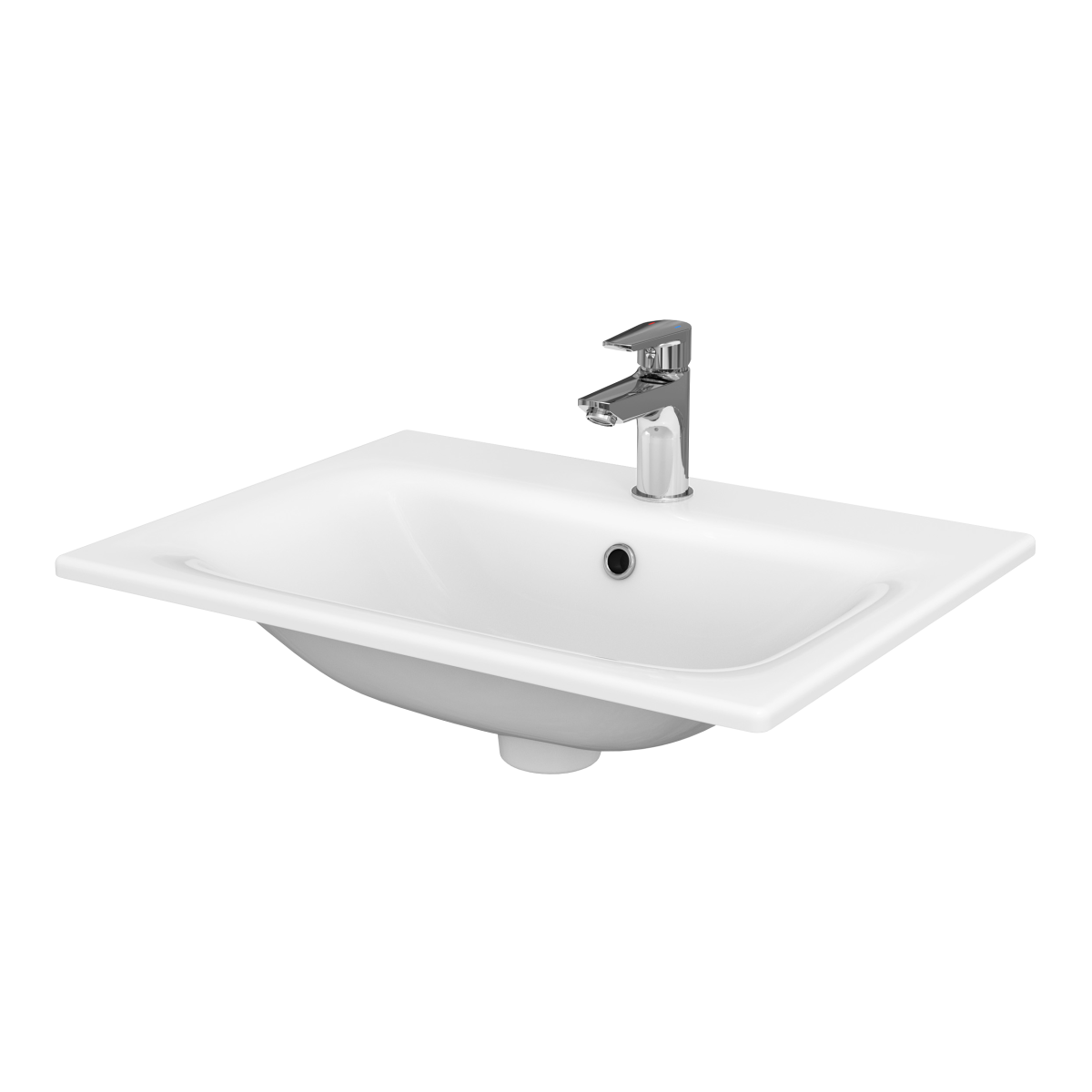 A Moduo 60 pultba építhető mosdó egyszerű, letisztult formájával sokféle fürdőszoba enteriőrjébe illeszkedik. A mosdó használható pultba építve és a Moduo család megfelelő méretű bútoraiba szerelve. A kerámia egyedi Cersanit fehér színnel rendelkezik és anyagának köszönhetően könnyen tisztán tartható.