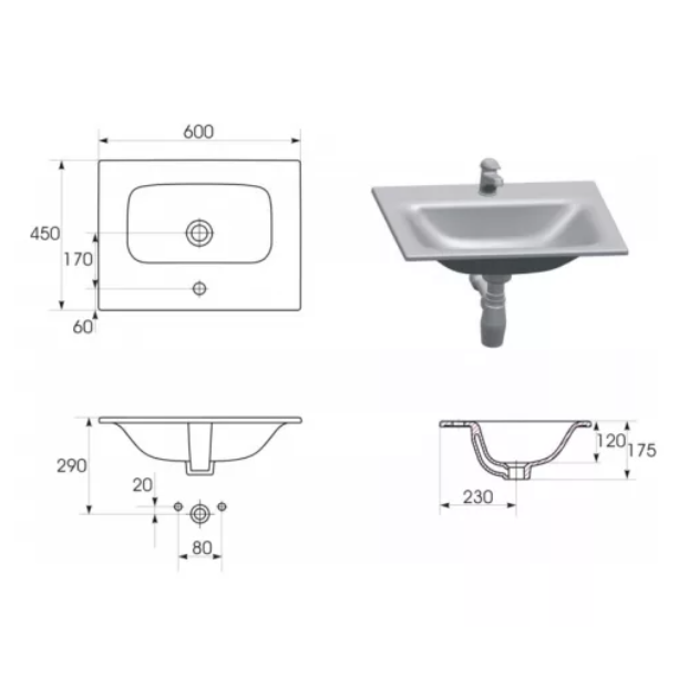 Mérete: 60 cm x 45 cm x 17.5 cm. A terméknek nem tartozéka a csaptelep.