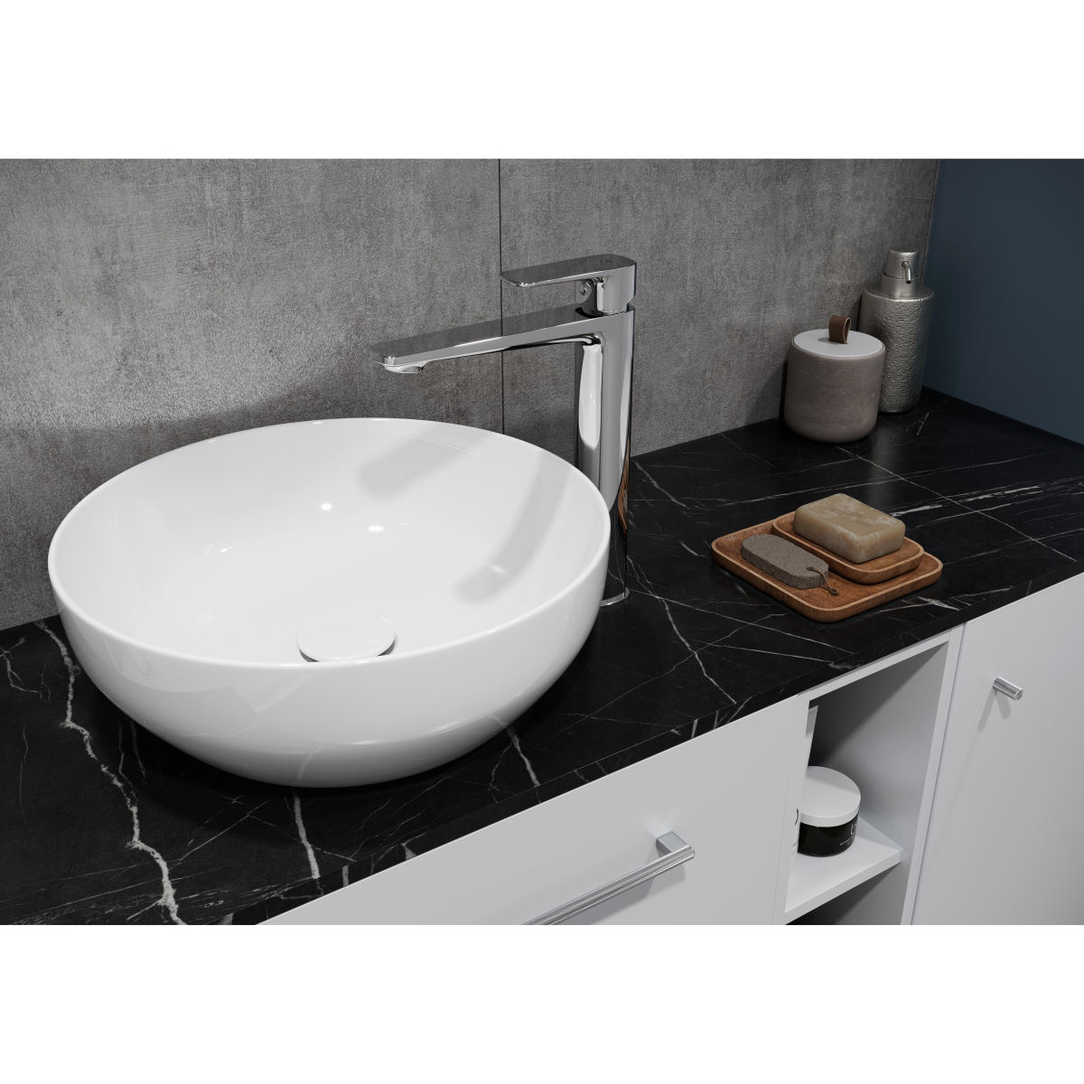 A Larga asztali mosdókagyló kiváló minőségű, könnyű és rendkívül erős Rocklite kerámia masszából készül, amely könnyen ellenáll az ütéseknek és a terhelésnek.