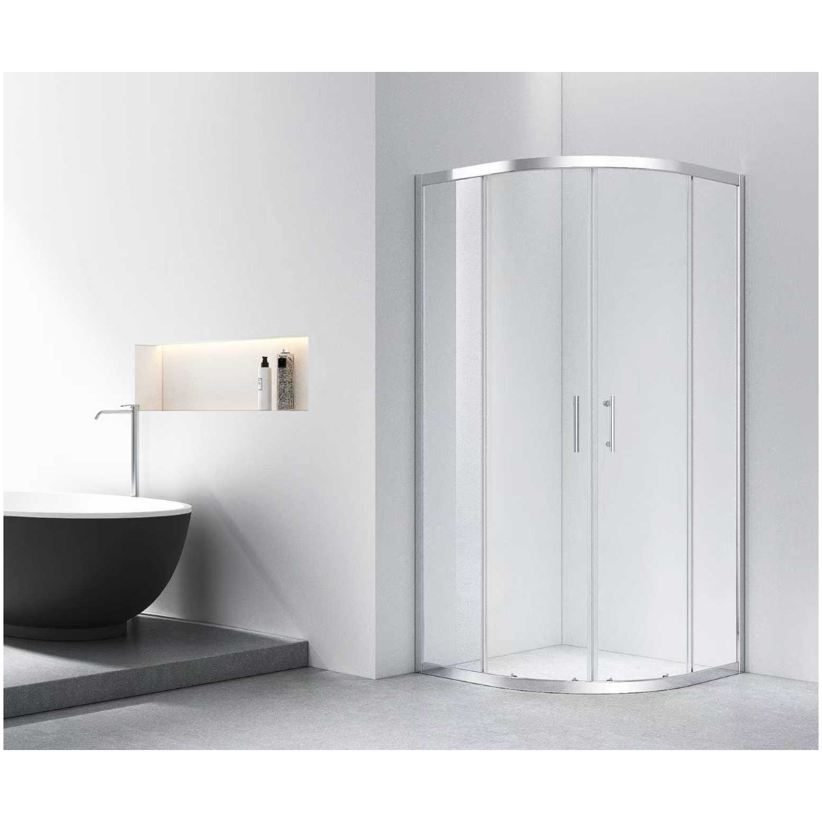 Az Oceano Grande 80×80×185 cm íves zuhanykabin elegáns és helytakarékos megoldás modern fürdőszobákba. Az íves kialakítás lágy vonalvezetést biztosít, miközben optimálisan kihasználja a rendelkezésre álló teret. A víztiszta, edzett biztonsági üveg és a krómozott részletek letisztult, prémium megjelenést kölcsönöznek.