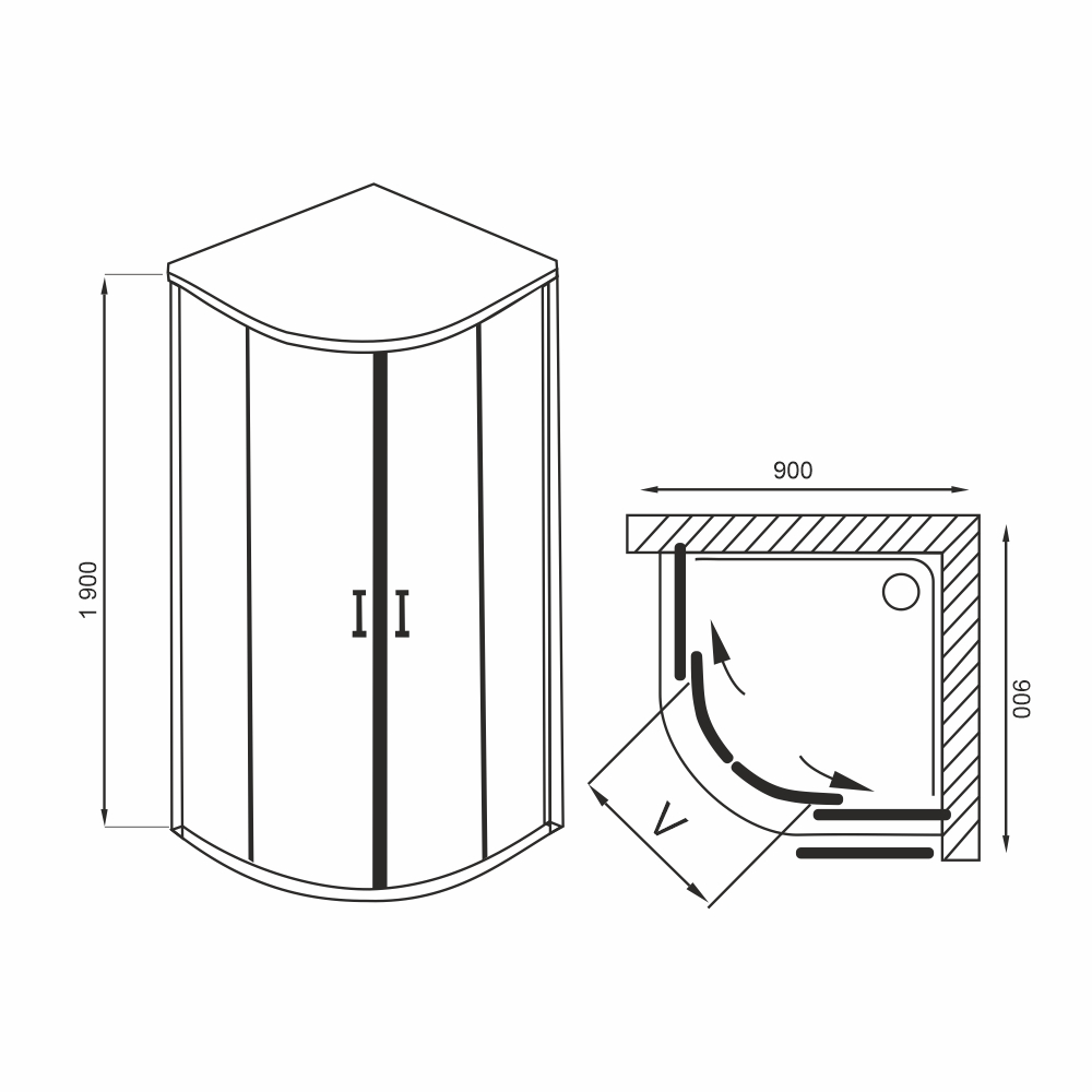 Kivitel: íves, tolóajtós zuhanykabin