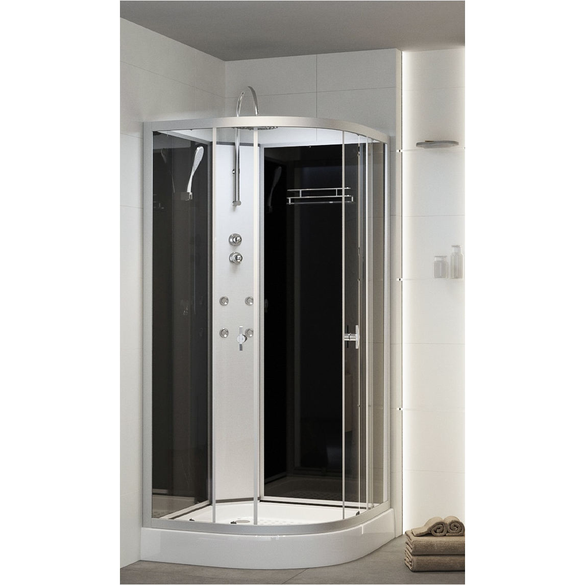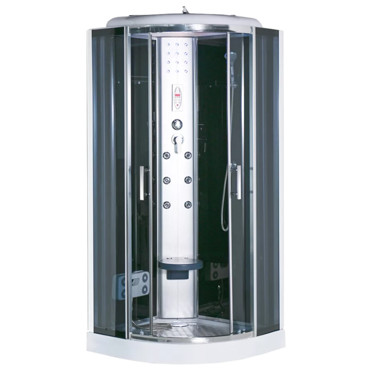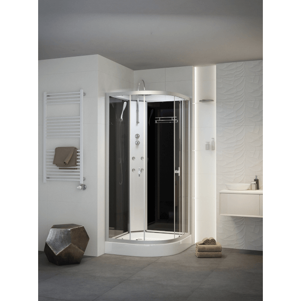 A Sanimix hidromasszázs zuhanykabin 90×90×222 cm letisztult, megbízható megoldás azok számára, akik a hidromasszázs élményét elektronika nélkül, egyszerűbb működéssel szeretnék élvezni. A fekete üveg hátfal és a mattkróm részletek modern, elegáns megjelenést adnak, miközben a masszázsfúvókák és a minőségi szerelvények a mindennapi komfortot szolgálják.