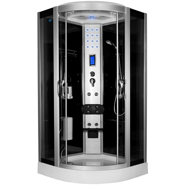 Sanimix hidromasszázs zuhanykabin 90x90x215cm fekete hátfallal, komplett kabin, elektronikával, sötétített biztonsági üveggel