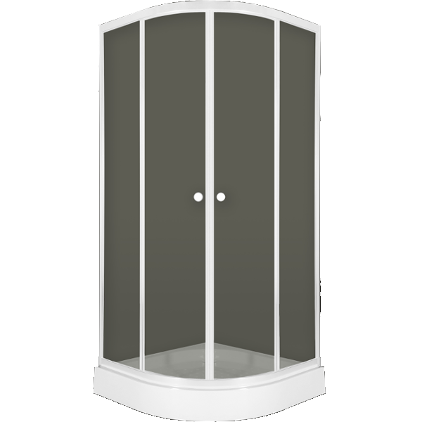 Negyedköríves zuhanykabin tálca nélkül, Mérete: 90x90x185cm, 4 mm vastag, víztiszta biztonsági üvegek és ajtók. fehér ívek és profilok. Mágneses ajtózár. Görgős ajtónyitás. fehér fogantyúk.