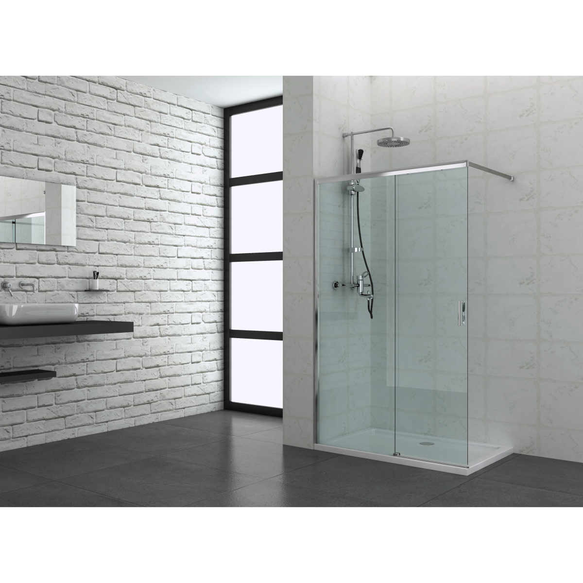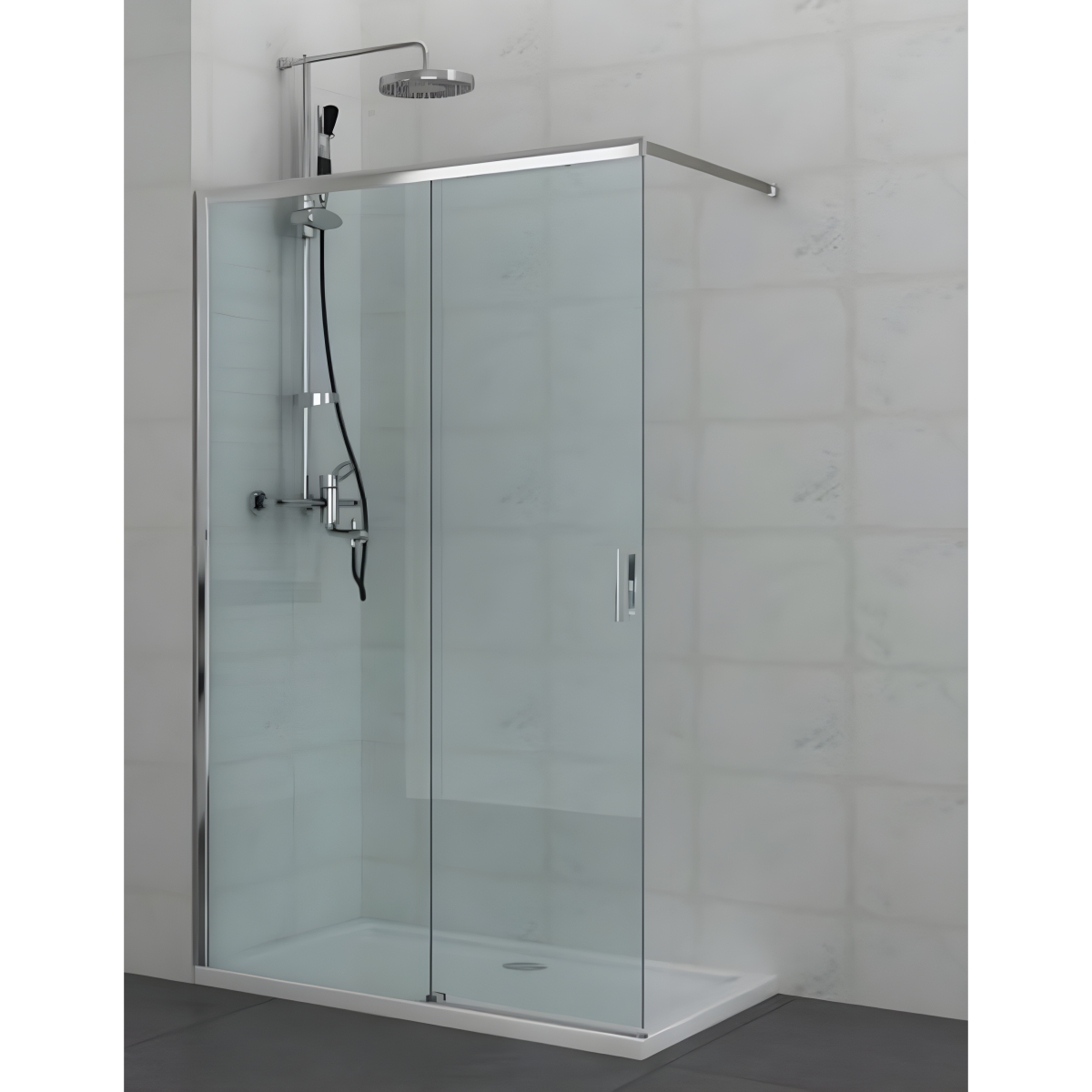 Fix fal 6 mm- es biztonsági üveggel, tolóajtó 5 mm- es biztonsági üveggel, króm profilokkal, króm fogantyúval rendelkezik.A zuhanyfal nem csak egy praktikus fürdőszobai kiegészítő, hanem egy stílusos design elem is, amely hozzájárul otthona modern és elegáns megjelenéséhez. A walk-in zuhanyfalak különösen népszerűek, mert nem csak hogy letisztult és esztétikai látványosságot adnak, de a takarításuk is rendkívül egyszerű, köszönhetően a szerelvények nélküli kialakításnak.