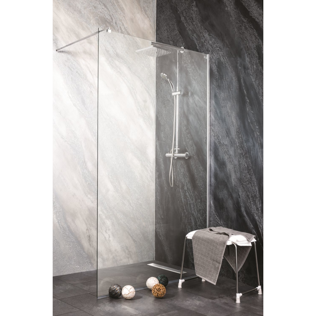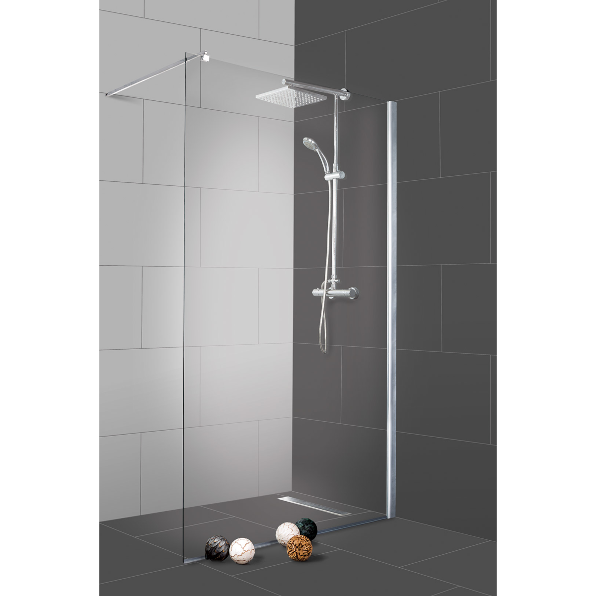 FREEDOM II Zuhanyfal, 8 mm-es biztonsági üveggel, vízlepergető bevonattal. Akadálymentes belépés. Teleszkópos króm távtartó (70-110 cm). Króm, állítható fali profil, 2,4-3,4 cm (a zuhanyfal szélessége emiatt 98-99 cm között állítható). Vízzáró szilikon tömítés. Króm padlórögzítő elemek. Jobbos/balos kivitelben is szerelhető.