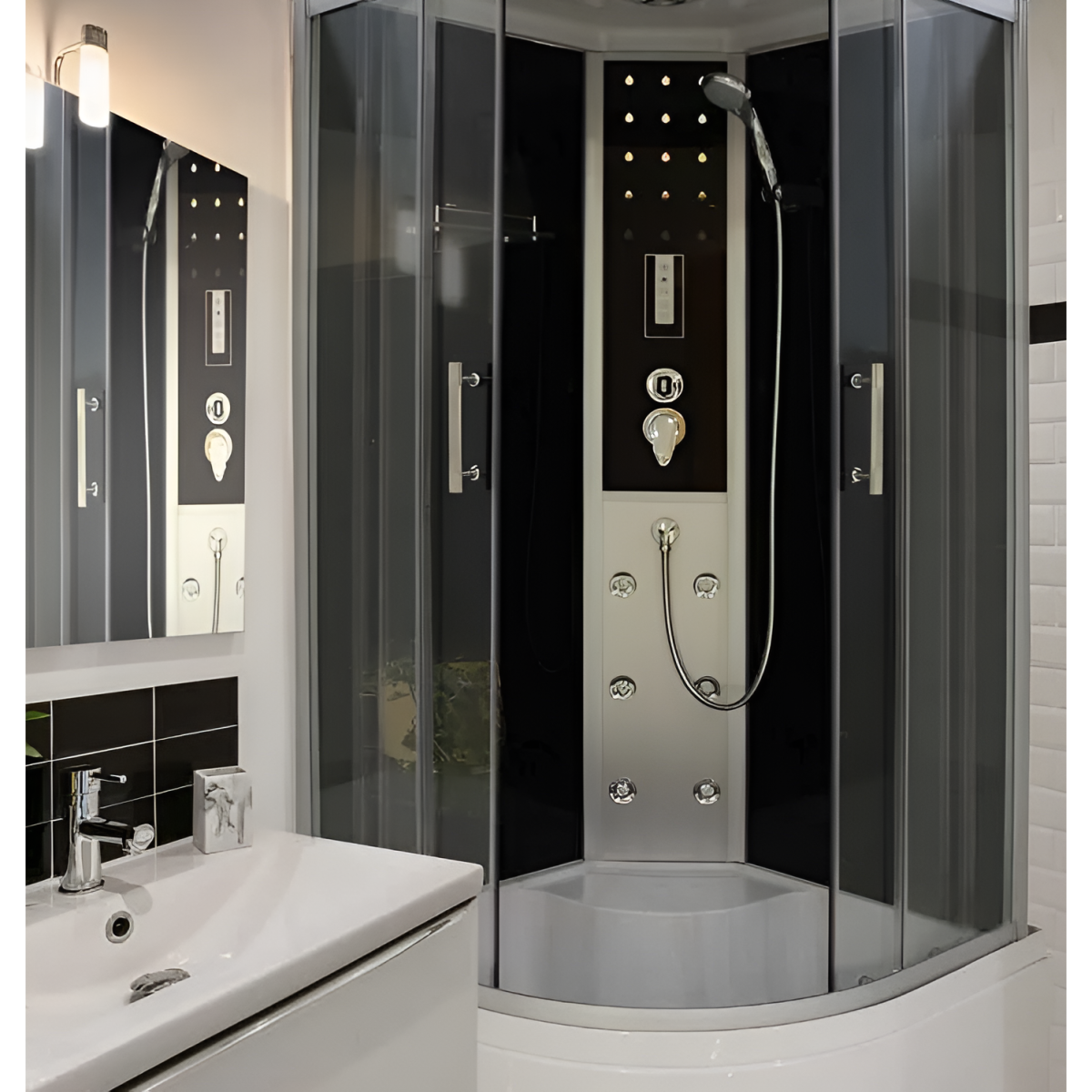 Sanotechnik Vita hidromasszázs zuhanykabin 90x90x215cm fekete hátfallal, komplett kabin, elektronikával