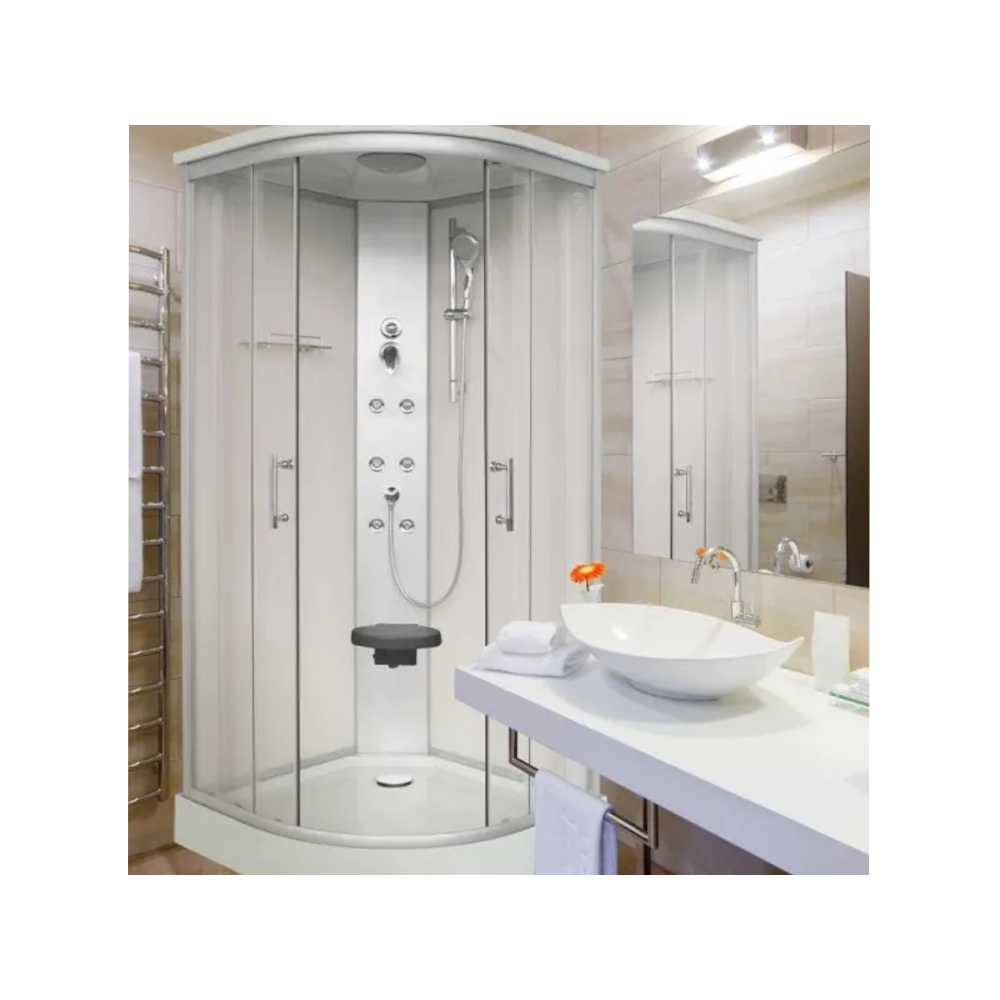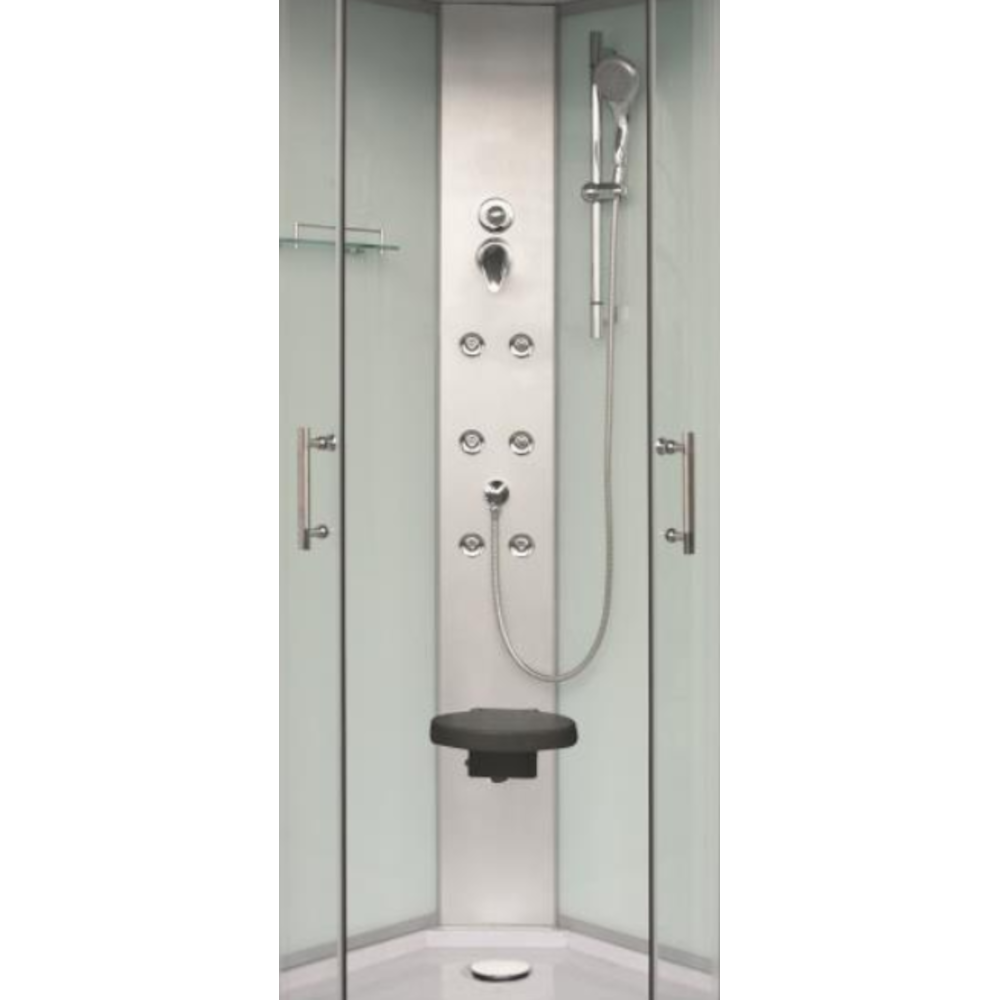 Rumba hidromasszázs zuhanykabin. A hidromasszázs zuhanykabin nagyon stílusosan mutat egy fürdőszobában, viszont nem csak feldobja a fürdőszoba hangulatát és nem csak a mindennapi fürdőzést teszi lehetővé, hanem egy igazi wellness élményt varázsol Önnek és családjának egyaránt. 6 hátmasszírozó fúvókával, keverő csapteleppel és funkcióváltóval, esőztető fejzuhannyal, többfunkciós, sínes kézi zuhannyal, piperepolccal, felhajtható ülőkével van ellátva.
