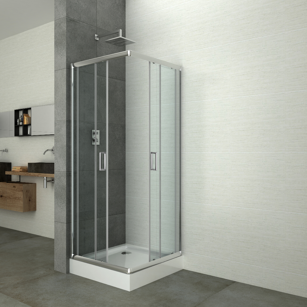 A Sanotechnik Sanodusch zuhanykabin 90×90×190 cm praktikus és megbízható megoldás szögletes sarokkabin kialakításához. A két tolóajtós kivitel kényelmes használatot biztosít, míg az 5 mm vastag edzett biztonsági üveg és a króm színű alumínium keret tartós, letisztult megjelenést ad a fürdőszobának. Az állítható fali profiloknak köszönhetően a kabin könnyen illeszthető a fal egyenetlenségeihez is.