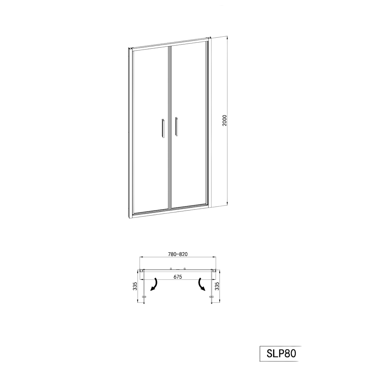 Sanotechnik Sanoslim kétszárnyas zuhanyfülkeajtó 78-82x200cm, 6mm edzett üveg, fekete profil