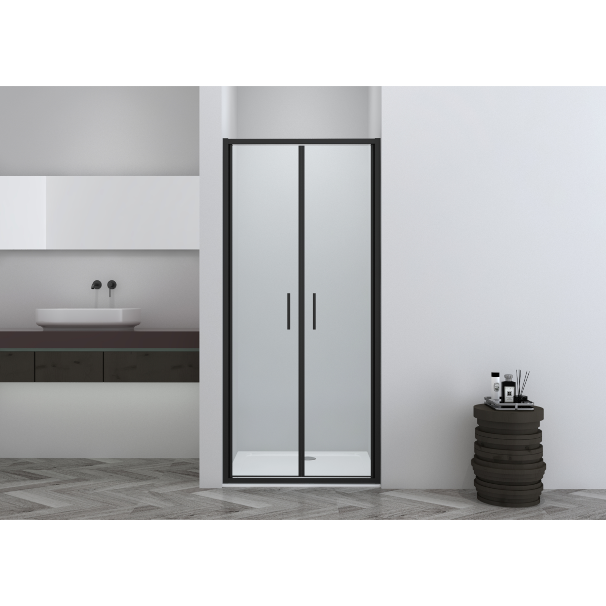 A Sanotechnik Sanoslim kétszárnyas zuhanyfülkeajtó 88–92×200 cm (fekete profil) modern és elegáns megoldás, amely a kétszárnyas kialakításnak köszönhetően széles, kényelmes belépést biztosít. Az átlátszó, 6 mm vastag ESG edzett biztonsági üveg és a fekete alumínium profilok letisztult, prémium megjelenést adnak, miközben a mindennapi használat is kényelmes és praktikus.