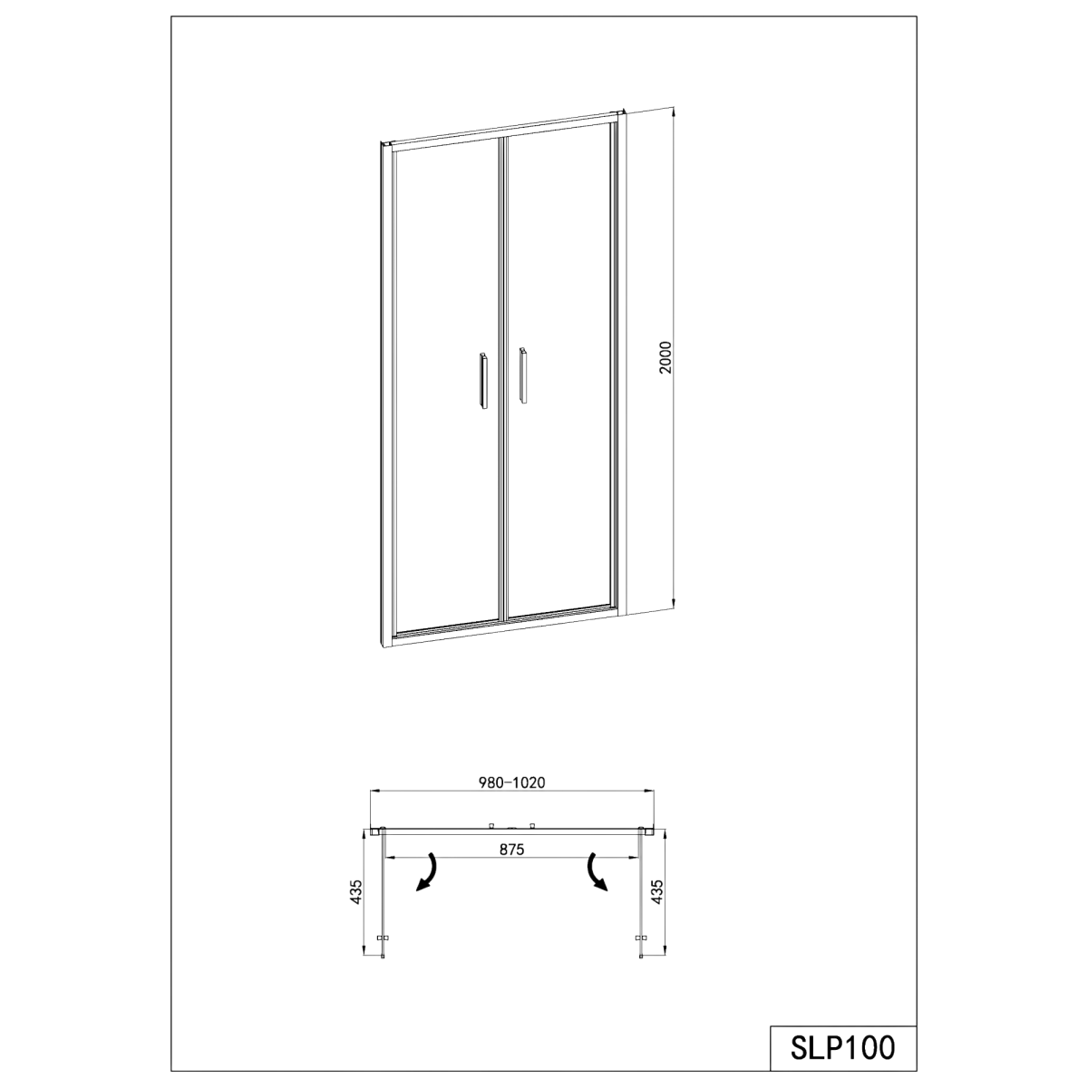 Sanotechnik Sanoslim kétszárnyas zuhanyfülkeajtó 98-102x200cm, 6mm edzett üveg, króm színű profil