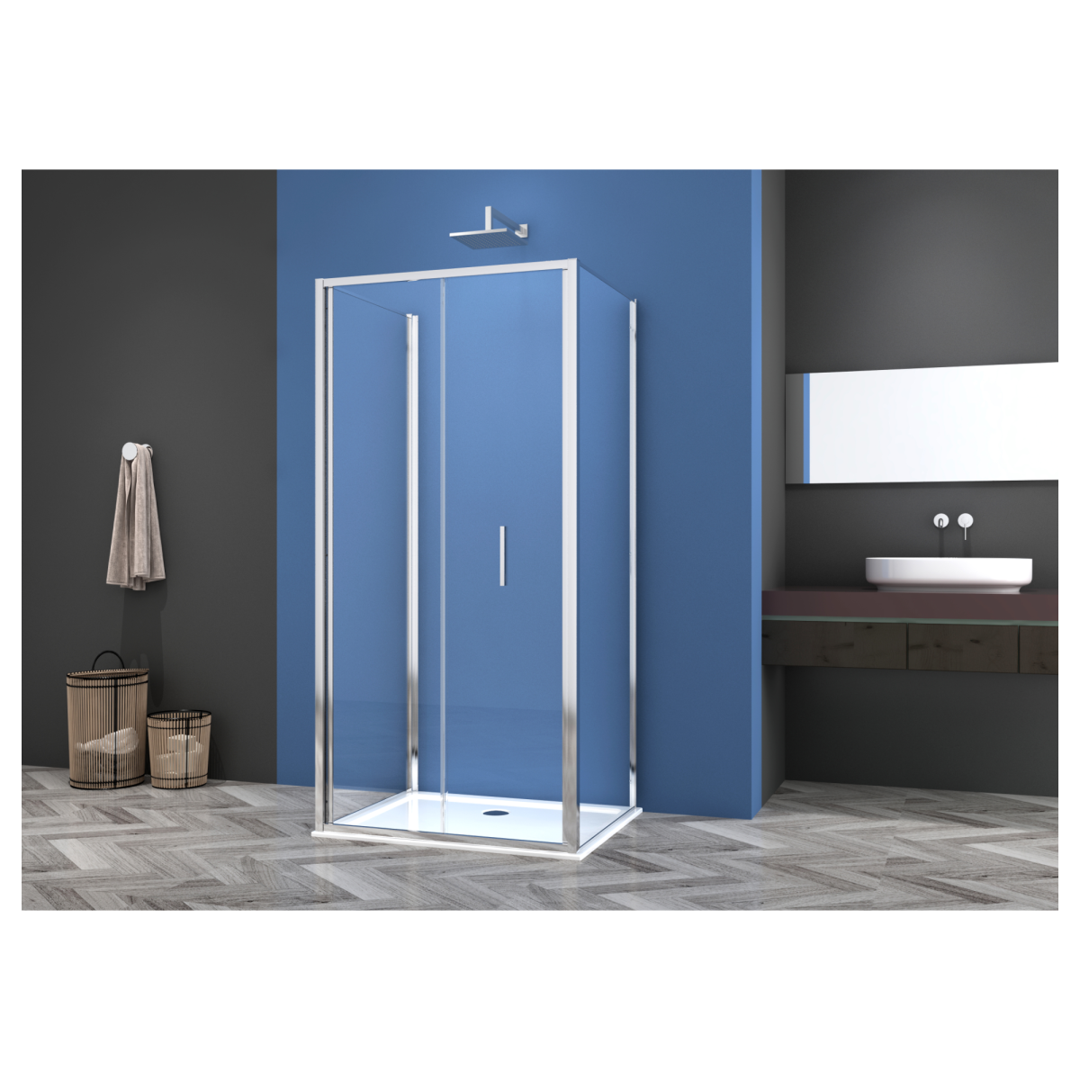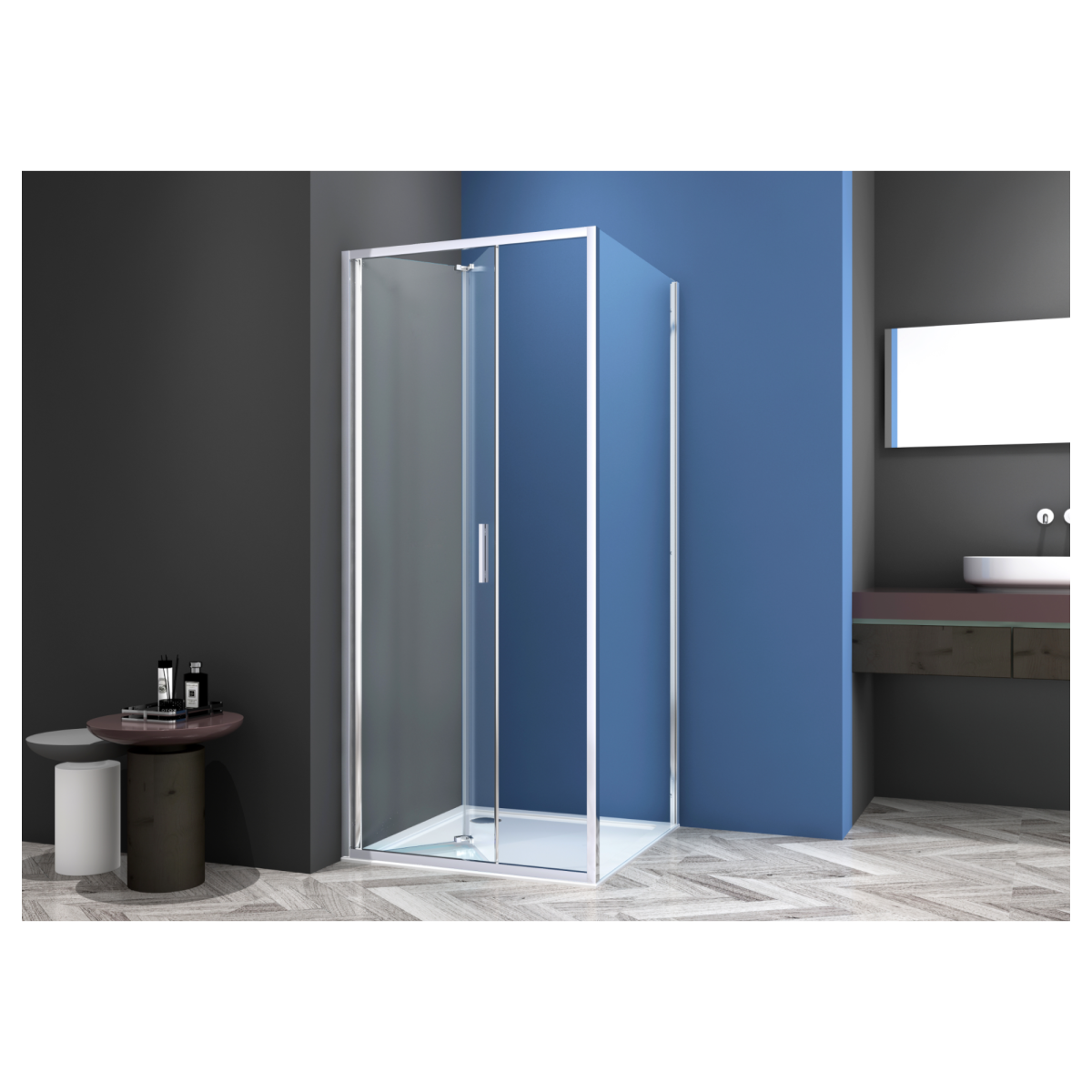 Sanotechnik Sanoslim zuhanyfülkeajtó 90x200cm, 6mm edzett üveg, króm színű profil, csuklóajtós
