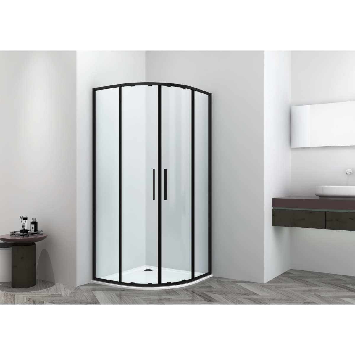 A Sanoslim 80×80×200 cm-es íves zuhanykabin matt fekete kerettel modern megjelenésével és praktikus kialakításával jól illeszkedik a letisztult, kortárs fürdőszobákba. A 6 mm vastag, víztiszta biztonsági üveg és az easy clean vízlepergető bevonat kényelmes használatot és egyszerűbb tisztíthatóságot biztosít, miközben az íves forma helytakarékos megoldást kínál.