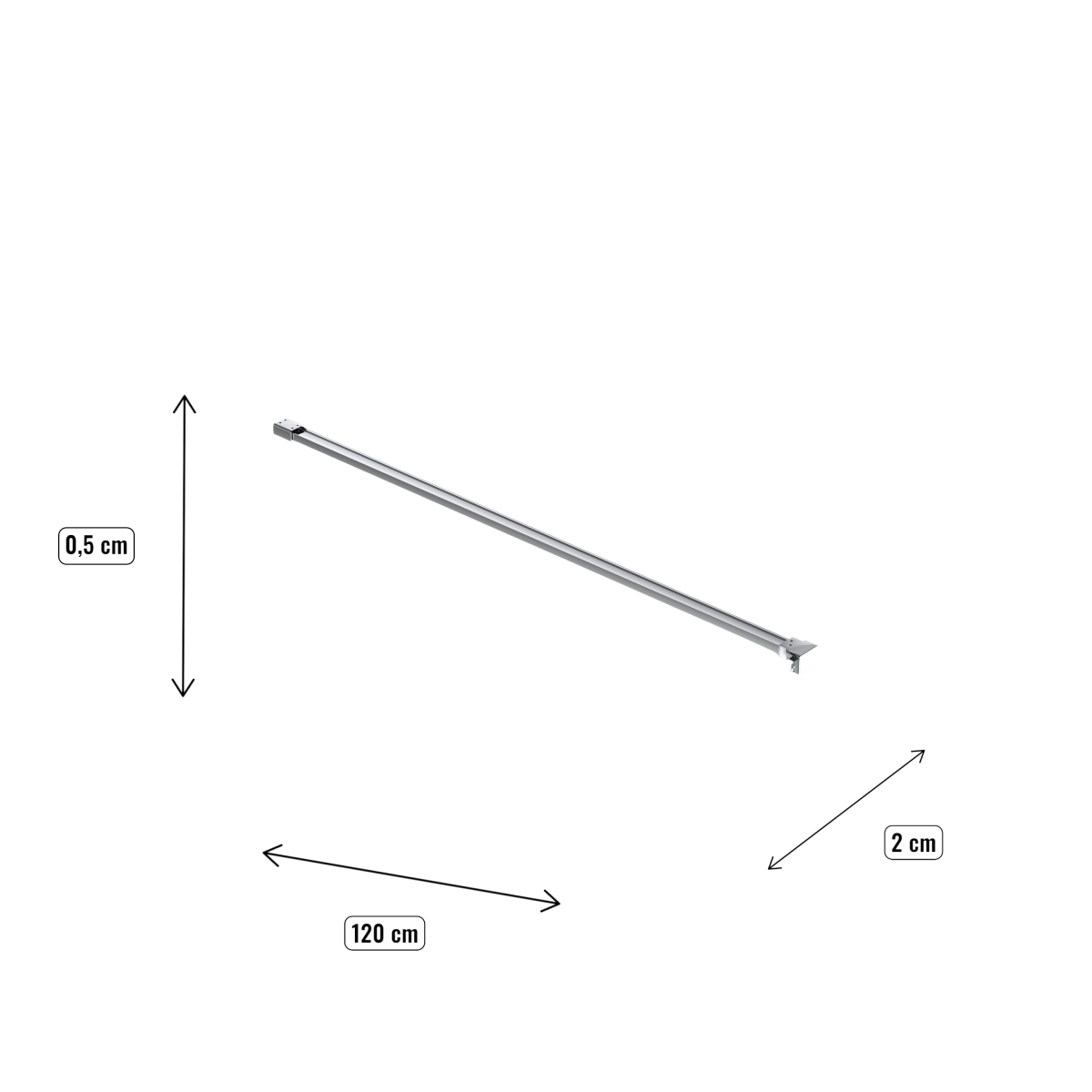 Ez a króm színű távtartó szett ideális megoldás, ha szeretnéd walk-in zuhanyfaladat biztonságosan és stílusosan rögzíteni. A 2 darab 118,5 cm hosszú, méretre vágható távtartóval könnyedén a kívánt méretre szabhatod a szerkezetet, így akár 120 cm távolságig is tökéletes stabilitást biztosíthatsz az üvegfalnak.