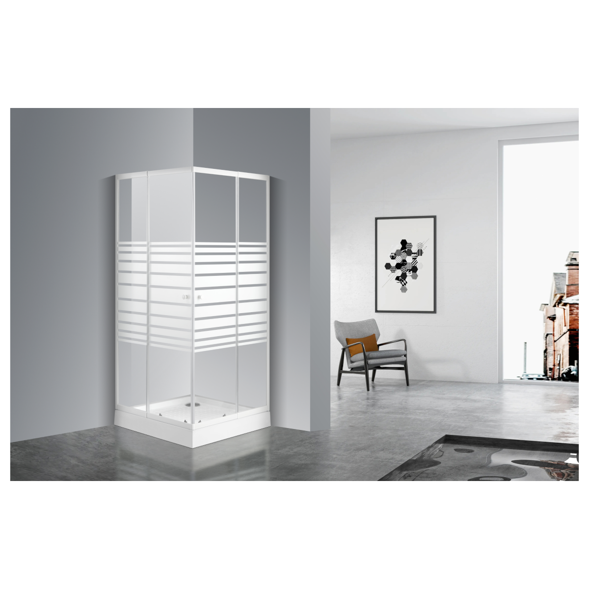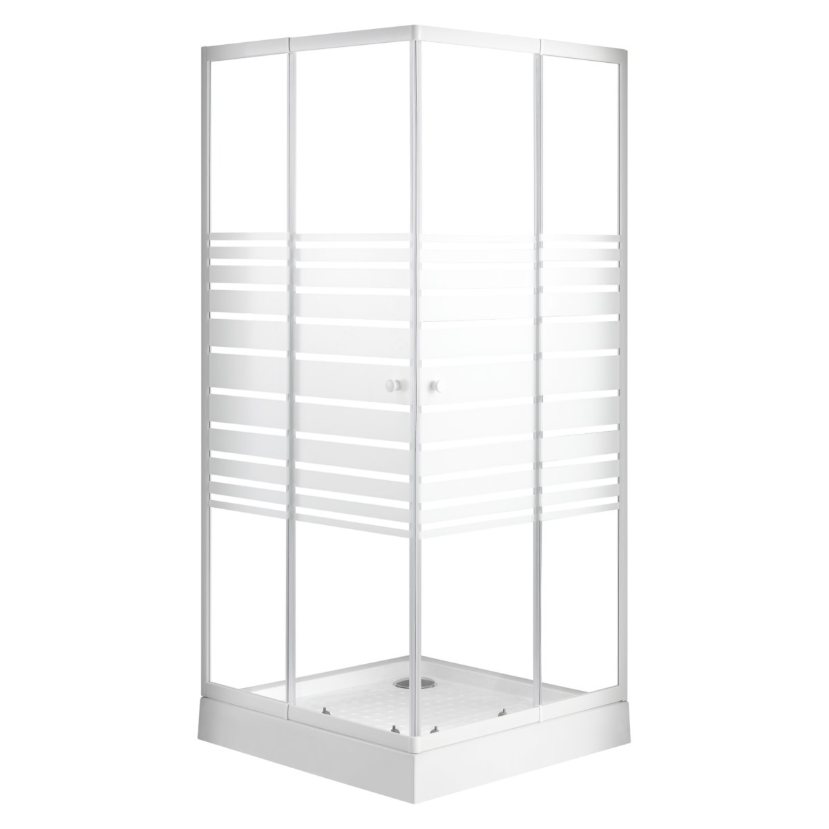 A Sanotechnik szögletes sarokkabin praktikus és helytakarékos megoldás modern fürdőszobákba. A 5 mm-es csíkos edzett biztonsági üveg, a fehér keret és a két tolóajtós kialakítás kényelmes használatot és letisztult megjelenést biztosít. Az állítható profilrendszernek köszönhetően a kabin rugalmasan illeszthető a különböző méretű zuhanytálcákhoz.