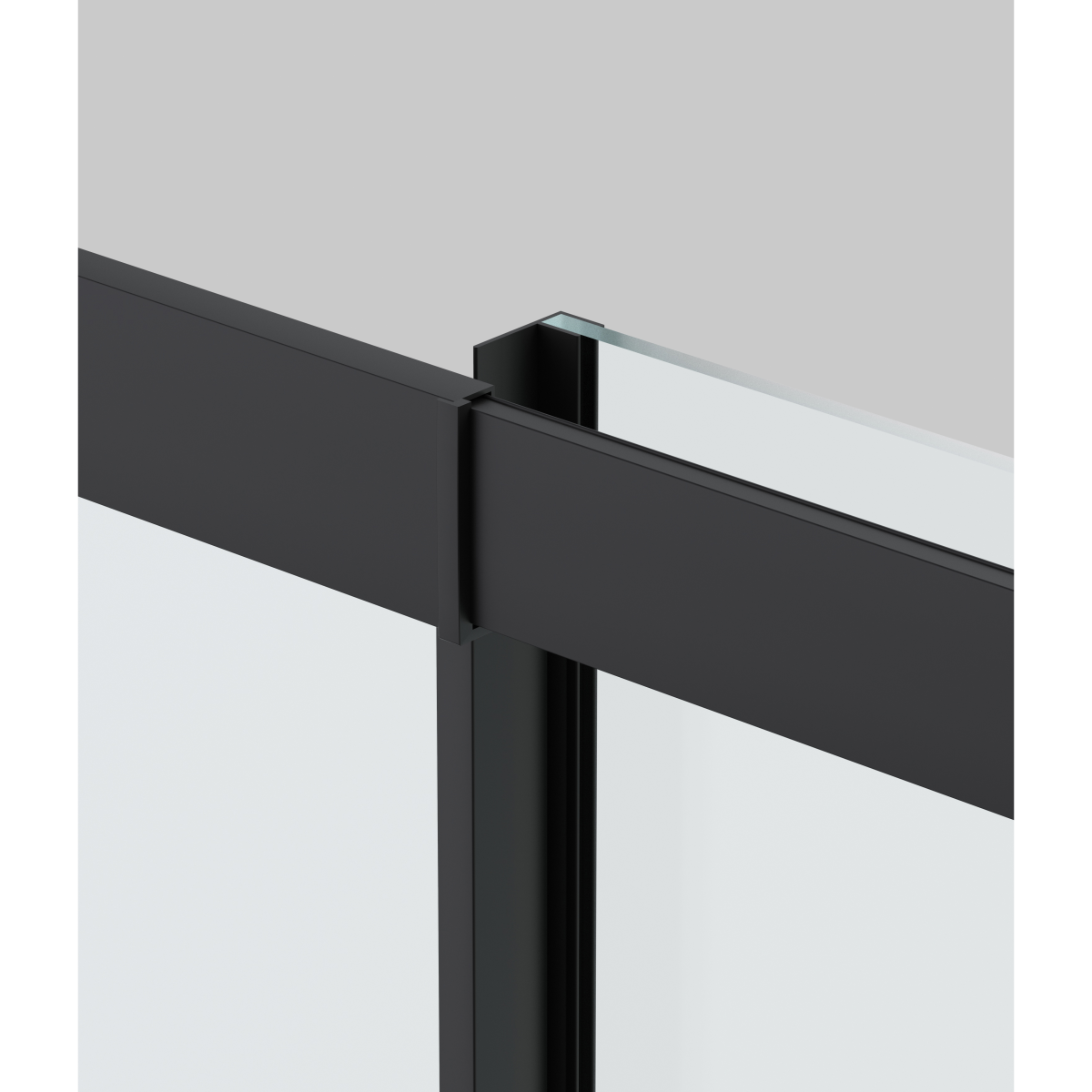 Sarokkabin két tolóajtóval, 5 mm-es edzett biztonsági üveggel és matt fekete, állítható fali profilokkal. A vezetősínek speciális kiképzése miatt mindkét ajtószárny 78–88 cm között állítható, így 80×80 cm-es vagy 90×90 cm-es zuhanytálcára – sőt aszimmetrikus méretre is – illeszthető.