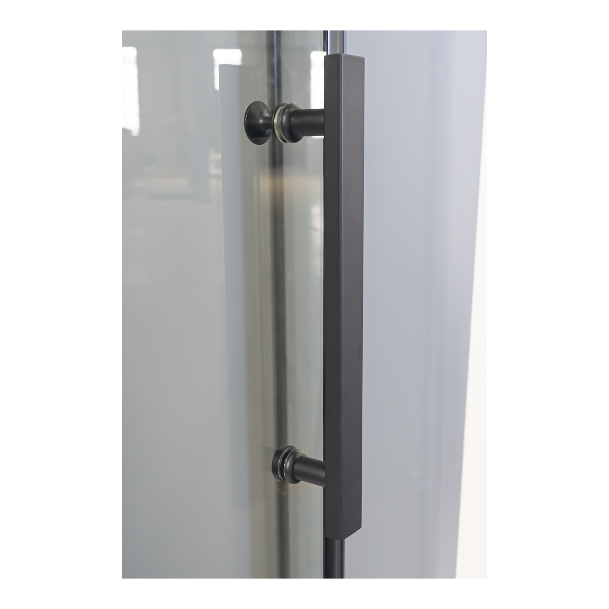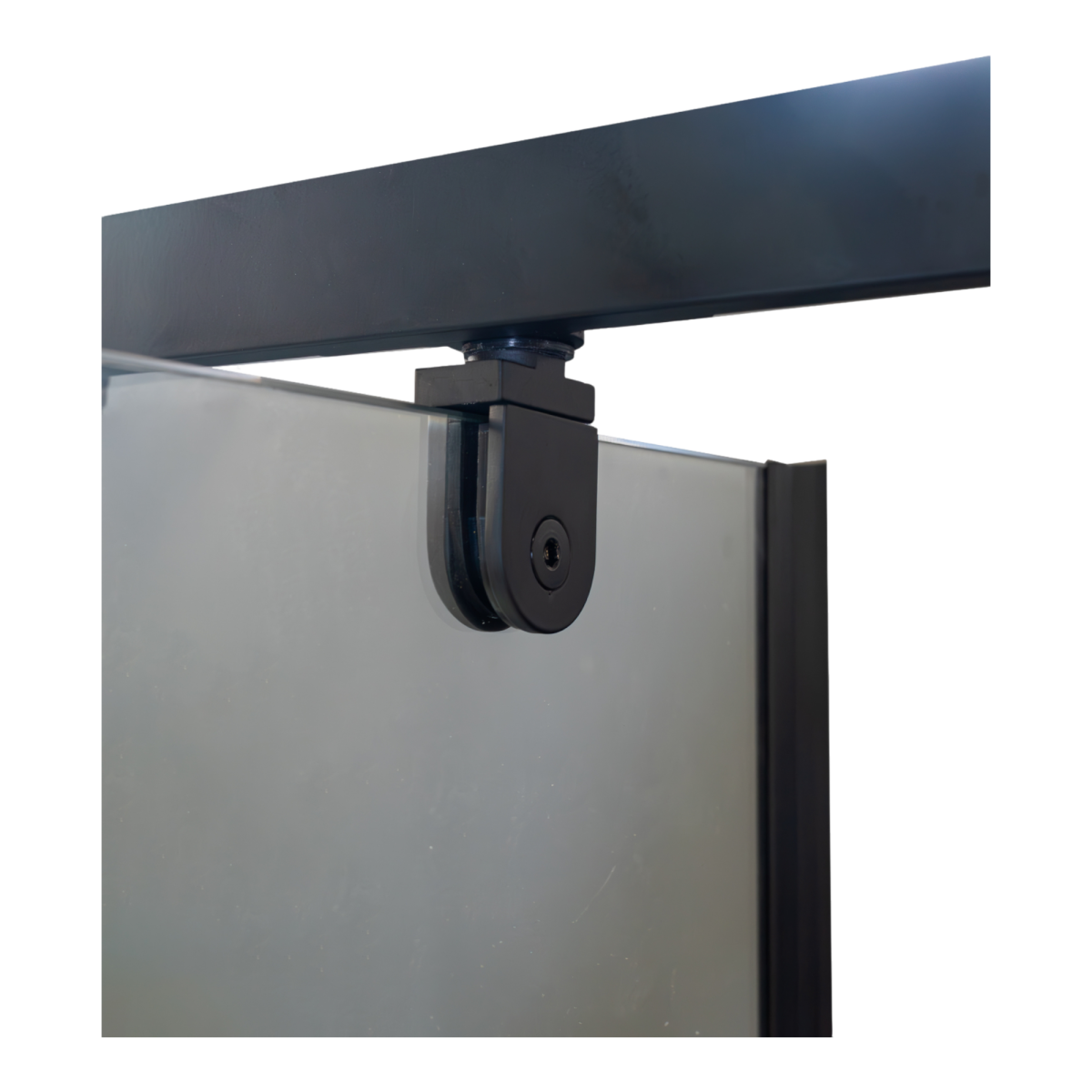 A matt fekete alumínium profilok elegáns kontrasztot alkotnak a víztiszta biztonsági üveggel, így harmonikusan ötvözik a funkcionalitást és a design-t.