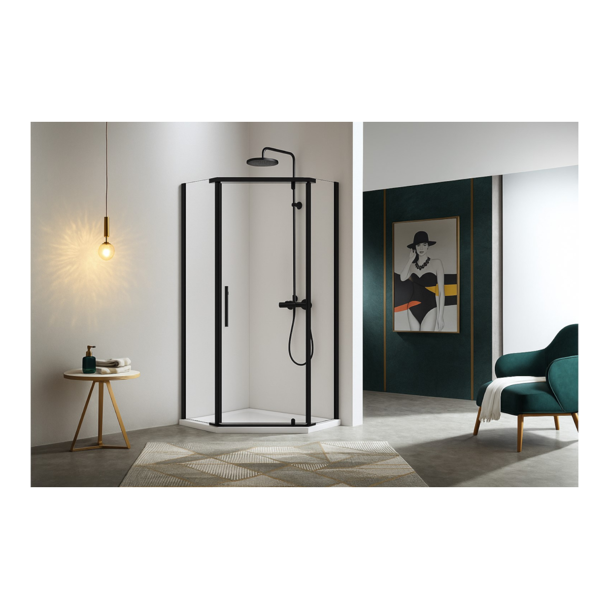 Sanotechnik zuhanykabin 90x90x190cm, ötszögletes, 6mm edzett üveg, fekete keret