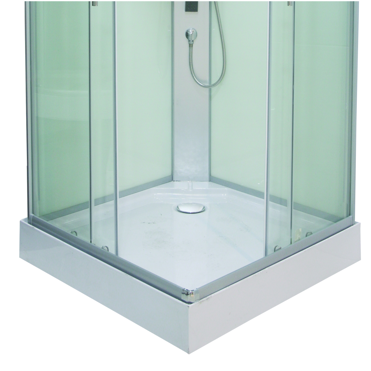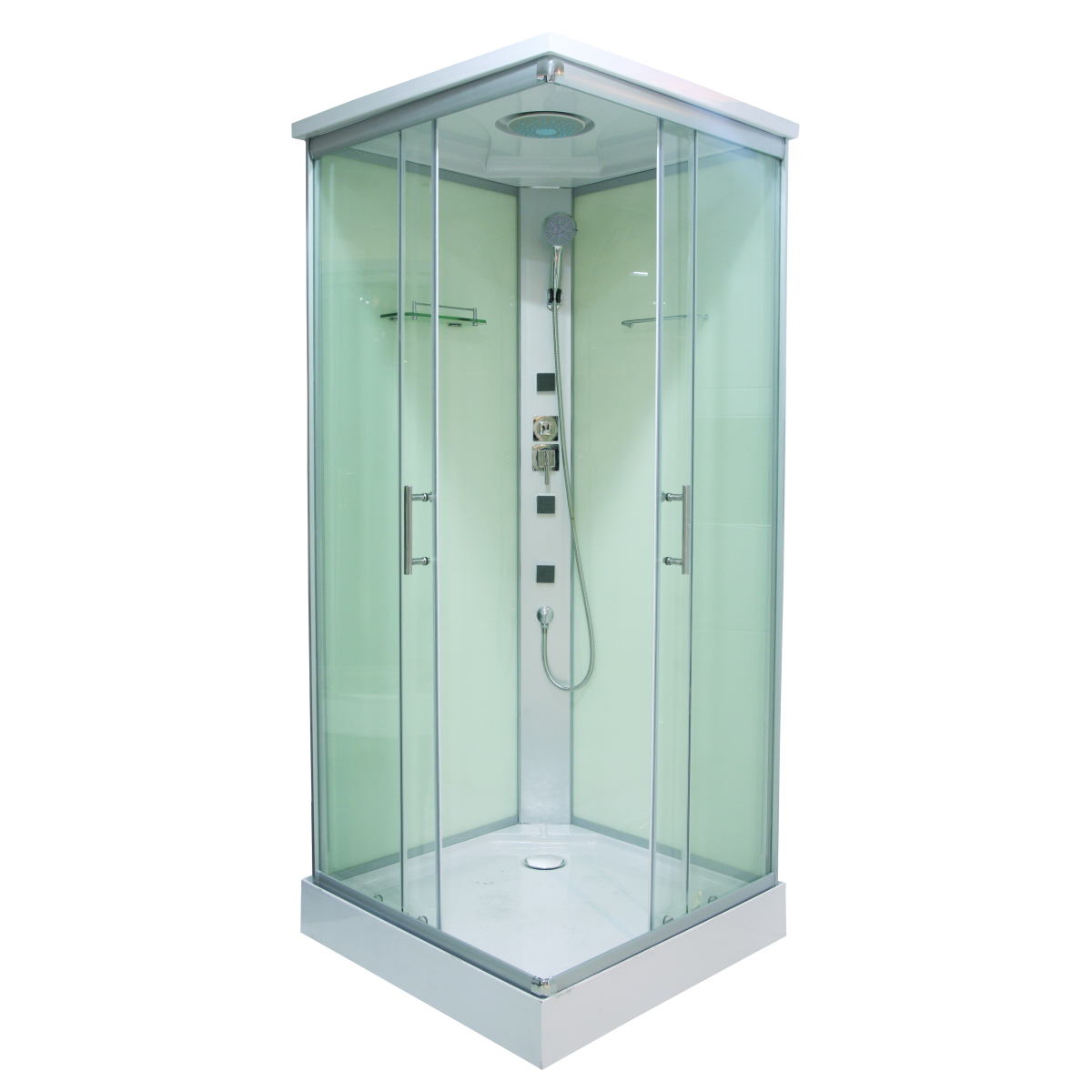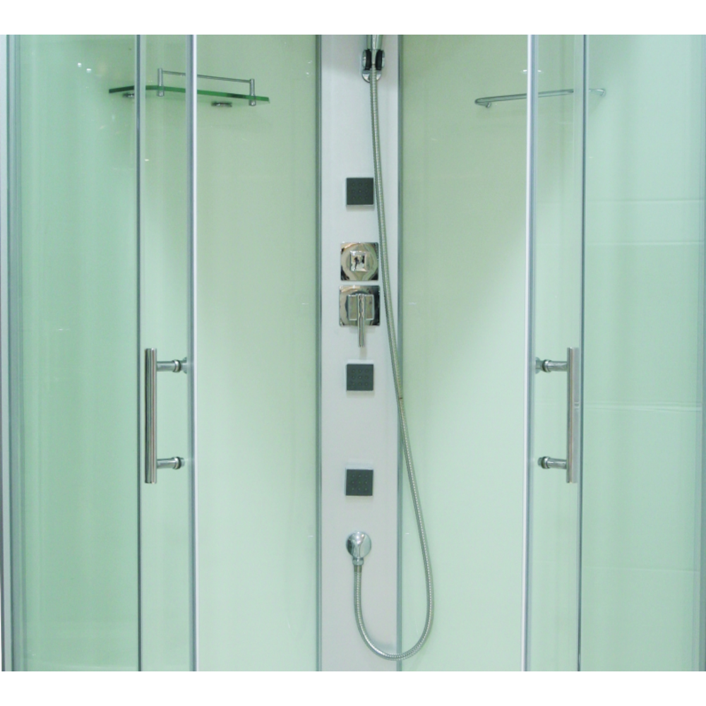 Twist komplett hidromasszázs. 5 mm-es biztonsági üveggel ajtók, 4 mm-es biztonsági üveg falakkal rendelkezik. 3 hátmasszírozó fúvókával, keverő csapteleppel, funkcióváltóval, esőztető fejzuhannyal, többfunkciós kézi zuhannyal, üveg piperepolccal, ABS zuhanytálca fix előlappal, lábbal és szifonnal, ABS tetővel van ellátva. A hidromasszázs zuhanykabin nagyon stílusosan mutat egy fürdőszobában, viszont nem csak feldobja a fürdőszoba hangulatát és nem csak a mindennapi fürdőzést teszi lehetővé, hanem egy igazi wellness élményt varázsol Önnek és családjának egyaránt.