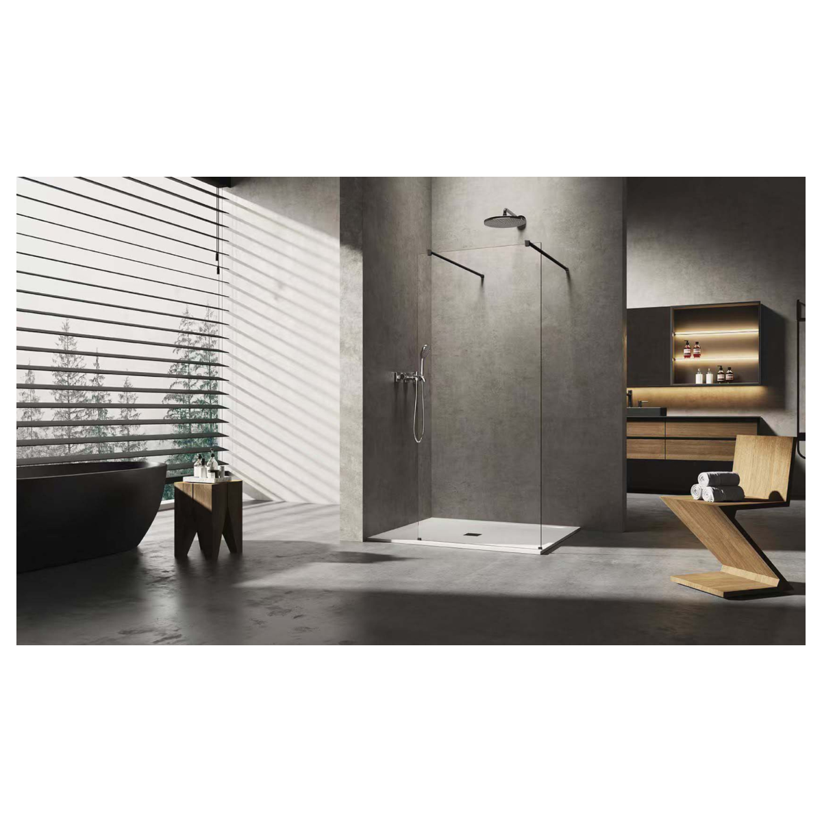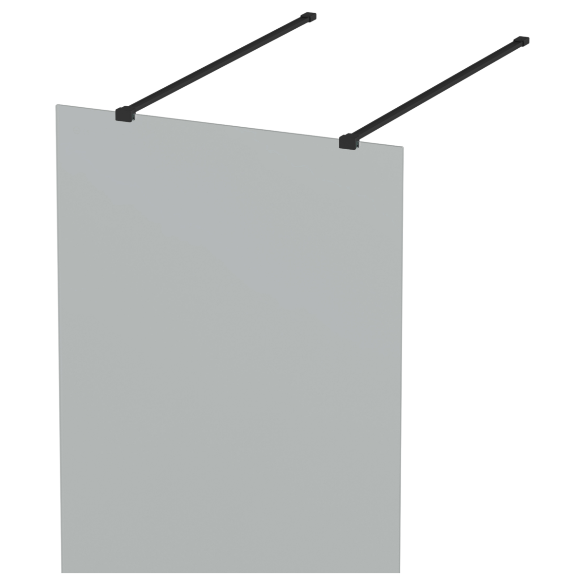 Ez a matt fekete rögzítő szett biztos és esztétikus megoldást nyújt a walk-in zuhanyfal stabil rögzítéséhez, miközben tökéletesen illeszkedik a modern fürdőszobai enteriőrökbe.