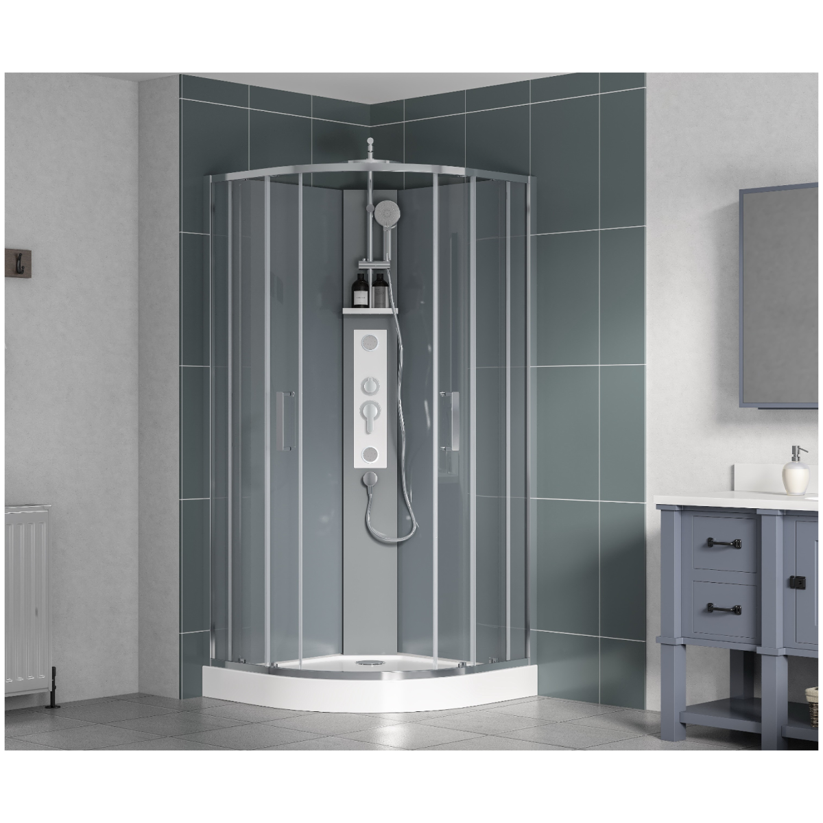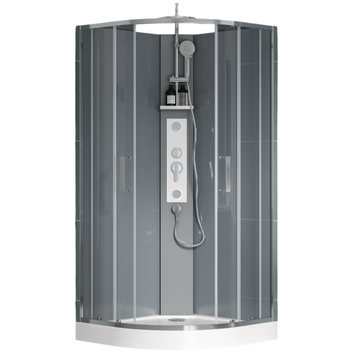 Wasserburg Clarity 90x90x220cm íves zuhanykabin tálcával, szürke hátfallal