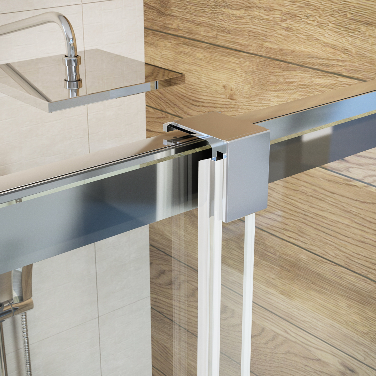 A 8 mm vastag, víztiszta edzett biztonsági üveg stabil szerkezetet ad, míg a vízlepergető NANO bevonat hozzájárul a könnyebb tisztán tartáshoz. Az úszó kivitelű ajtórendszer és a rejtett görgők esztétikus, letisztult összhatást eredményeznek, a krómozott alumínium profilok pedig jól illeszkednek modern fürdőszobákba.