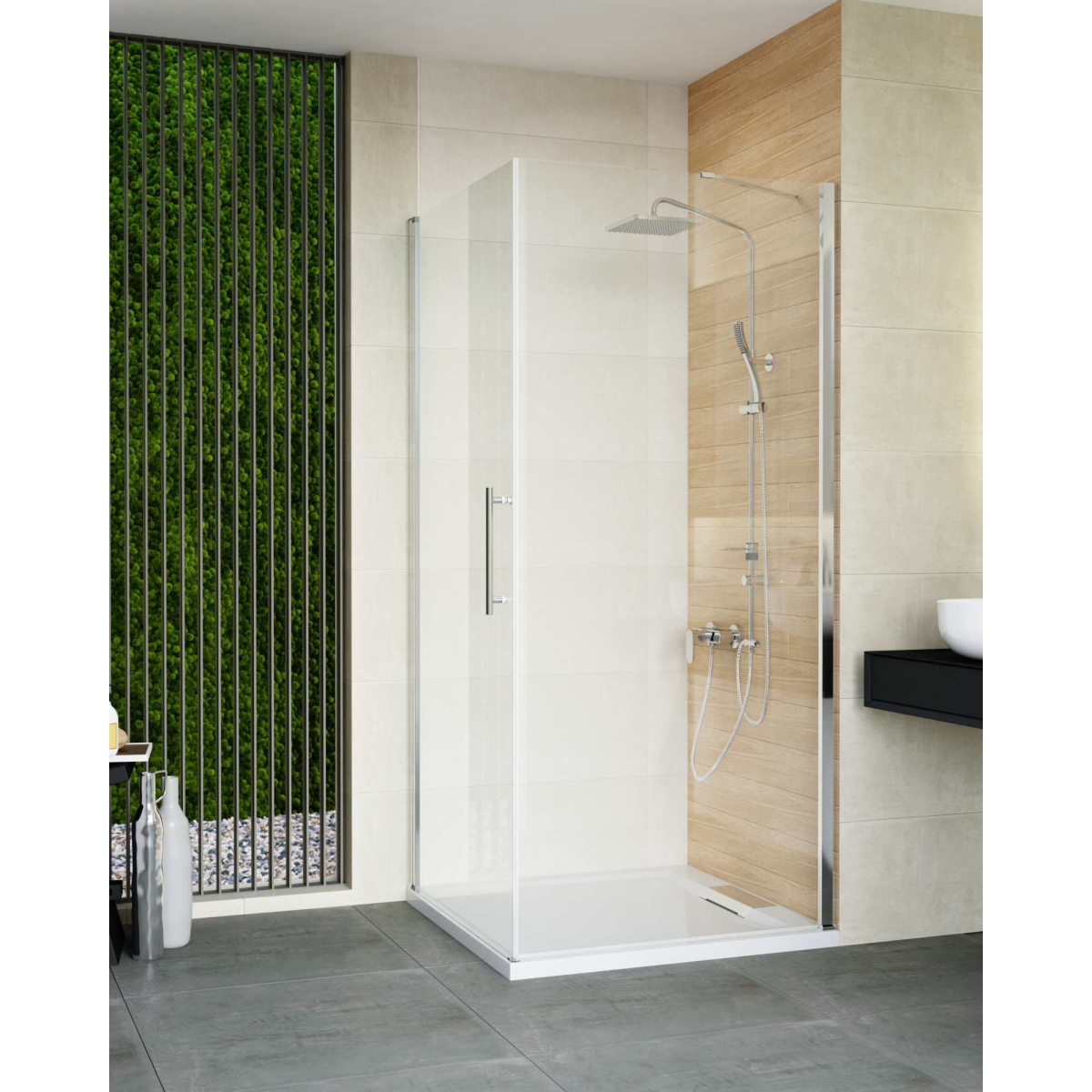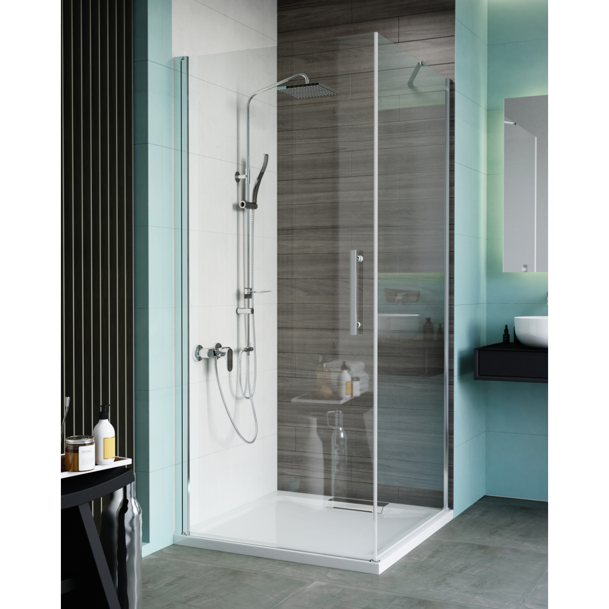 A 6 mm vastag, víztiszta edzett biztonsági üveg megfelelő stabilitást biztosít, míg a vízlepergető NANO bevonat segít a vízkő és szennyeződések lerakódásának csökkentésében. A krómozott alumínium profilok és a fém fogantyú egységes, letisztult megjelenést adnak, az emelőmechanikás zsanér pedig kényelmes ajtóhasználatot tesz lehetővé. Jobb és baloldali szerelhetőségének köszönhetően többféle fürdőszobai elrendezéshez is jól illeszkedik.