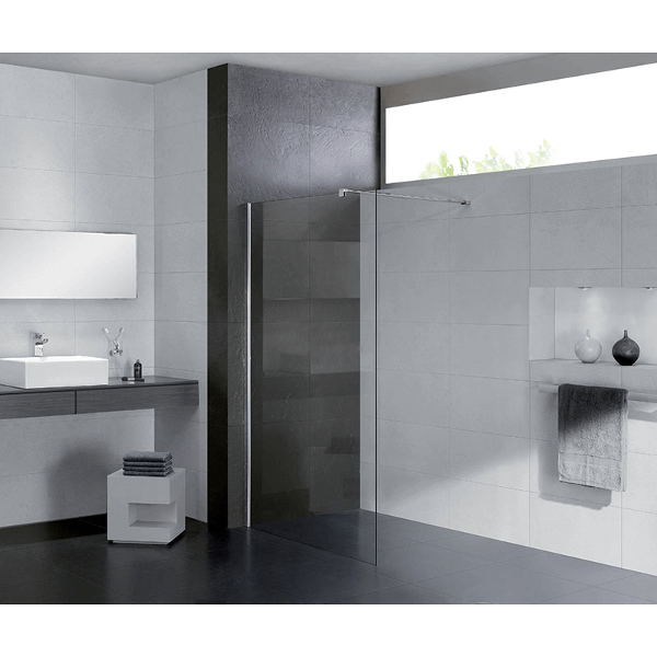 Astro 90 zuhanyfal Jellemzők: 8 mm vastag biztonsági üveg polírozott alumínium keret krómozott acél tartókonzol a tartókonzol tetszőleges méretre vágható, hossza 117 cm Méret: 90x190 cm