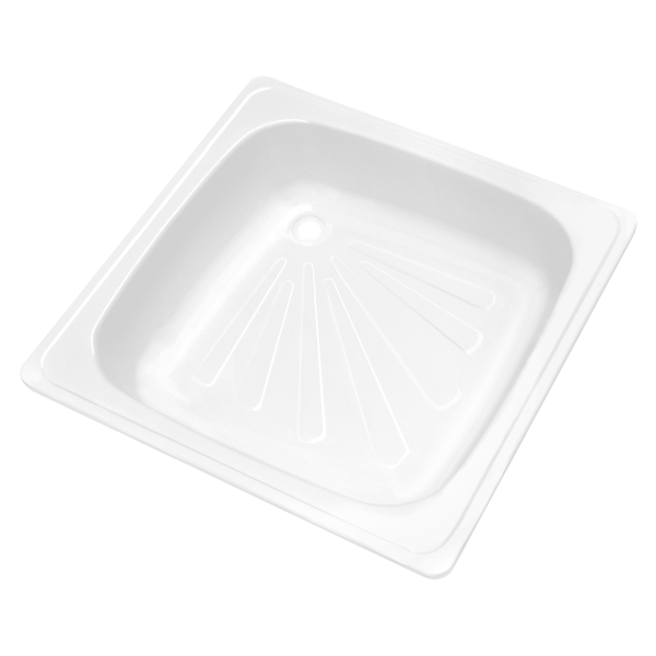 Zománcozott acél zuhanytálca, 90x90x15 cm, fehér színű.