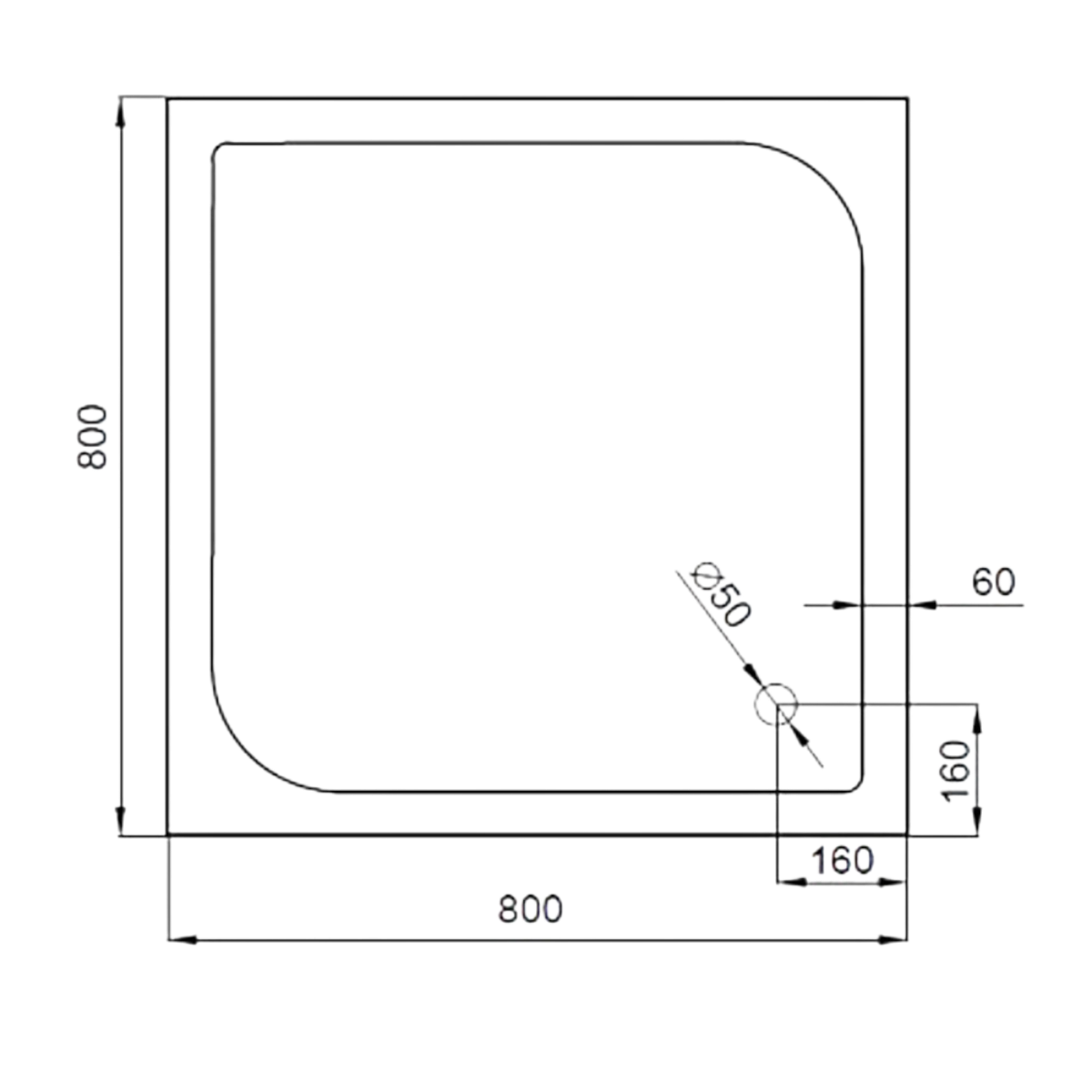 A 80 cm x 80 cm x 14 cm-es méret ideális a legtöbb zuhanykabinhoz, a szifon átmérője 50 mm.