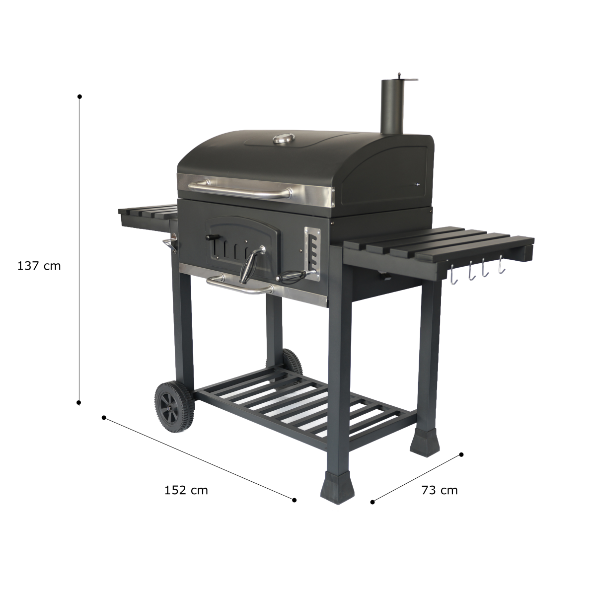 Faszenes grill 152×73×137 cm – nagy méretű grillező többfunkciós kialakítással