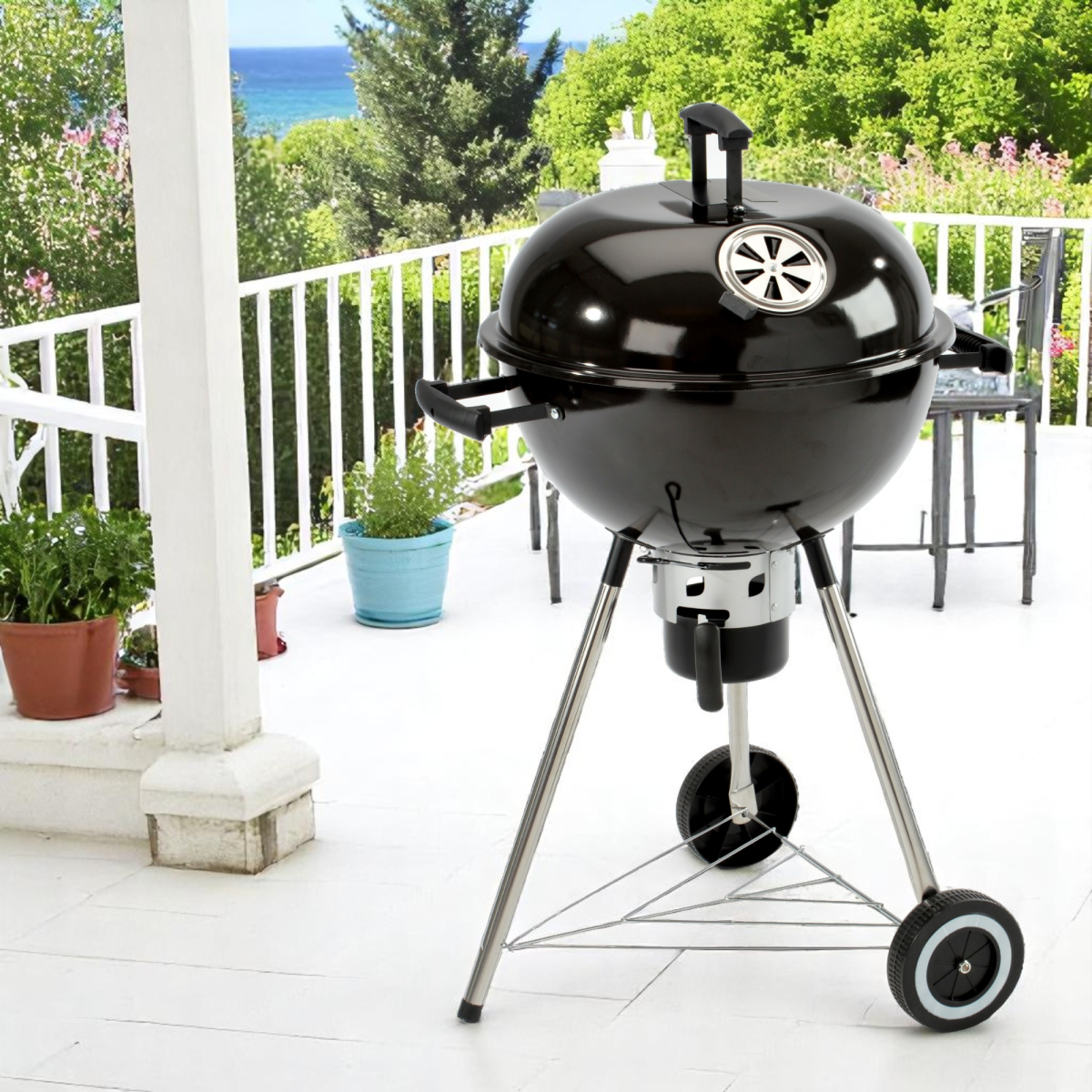 A 43 cm átmérőjű moduláris rács elegendő sütőfelületet nyújt, míg a szellőztető rekesz segítségével egyszerűen szabályozható a hőmérséklet a grillezés során. A 92 cm magas grill két kerékkel van felszerelve, így könnyen mozgatható a kertben vagy teraszon.
