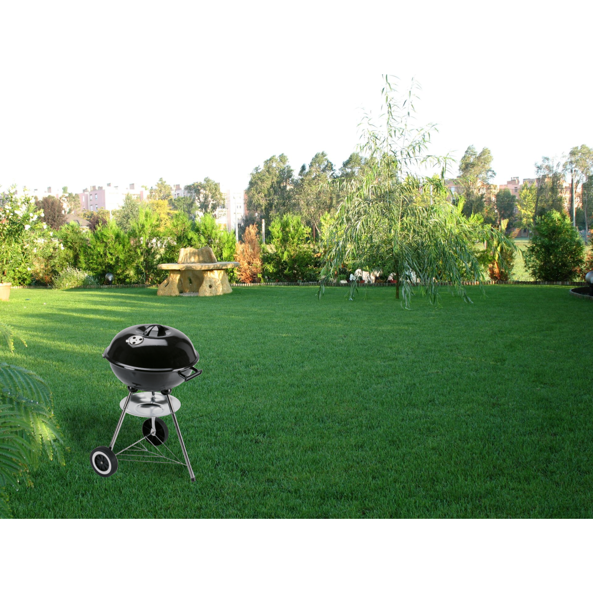 A 41,5 cm átmérőjű rács elegendő sütőfelületet biztosít családi vagy baráti összejövetelekhez. A fedélen található krómozott szellőzőkorong szabályozza a levegőáramlást, így könnyedén beállítható a tűztér hőmérséklete közvetlen és indirekt sütés során is. A beépített hamugyűjtő tálca gyors tisztítást tesz lehetővé, a kerekek pedig kényelmes mozgatást biztosítanak. Az alsó polc praktikus helyet kínál eszközök és alapanyagok tárolására.