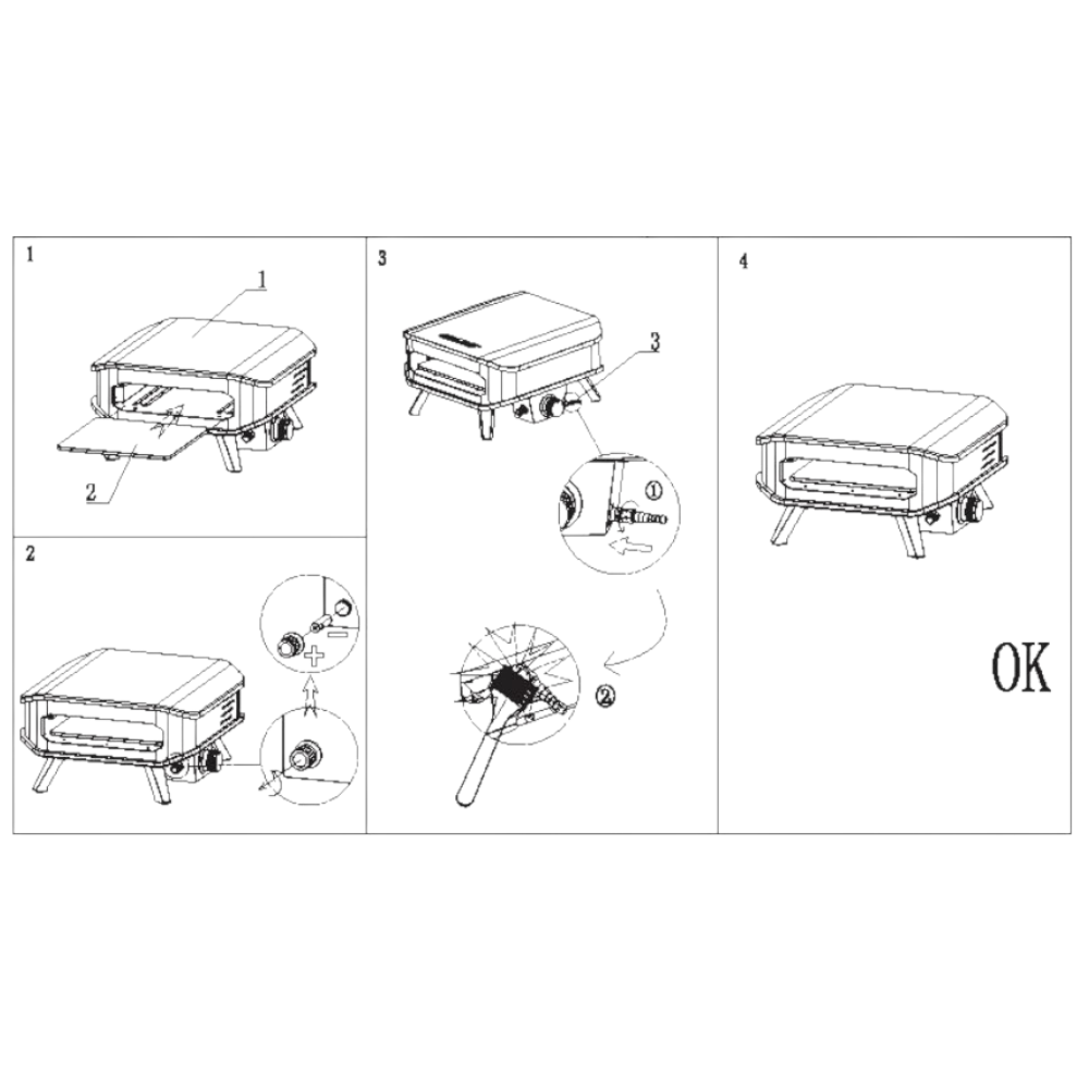 A pizzakemence egyszerűen használható, gázcsatlakoztatással működik.